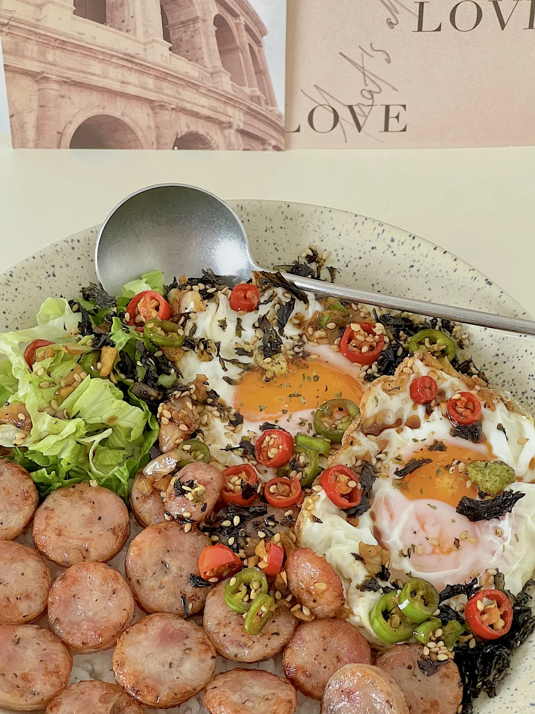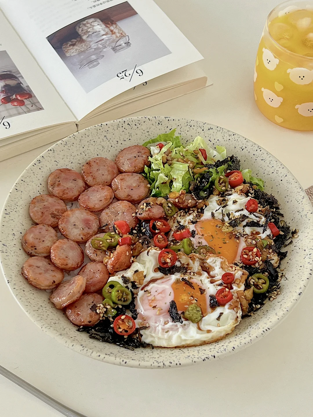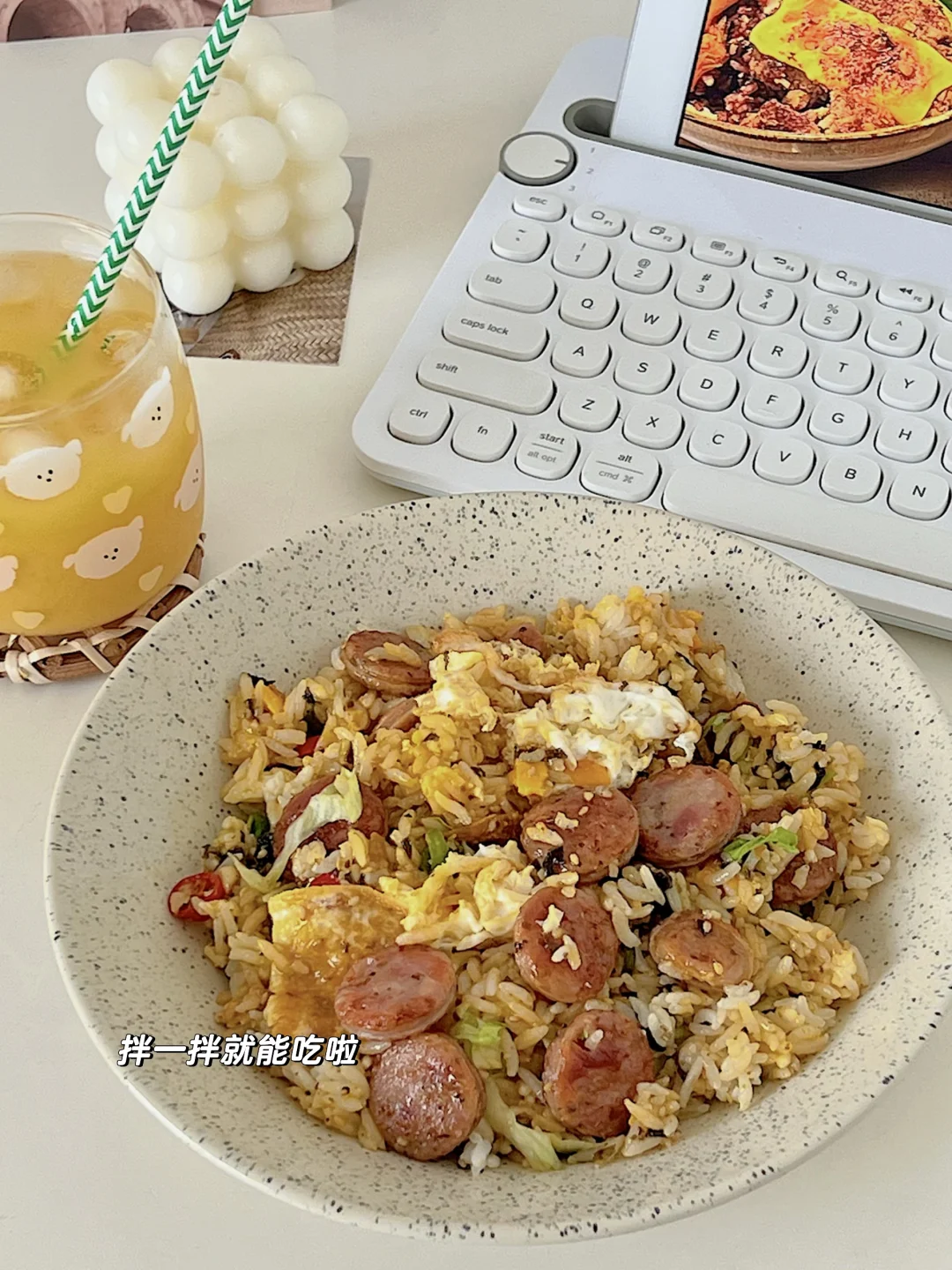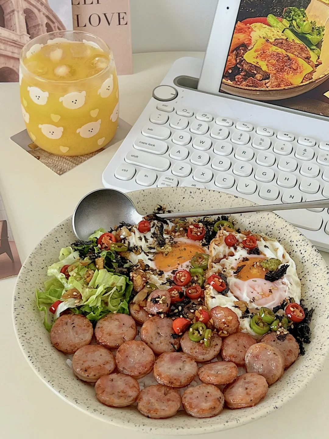 普通人的减脂餐🥣巨满足的原切肉肠煎蛋拌饭