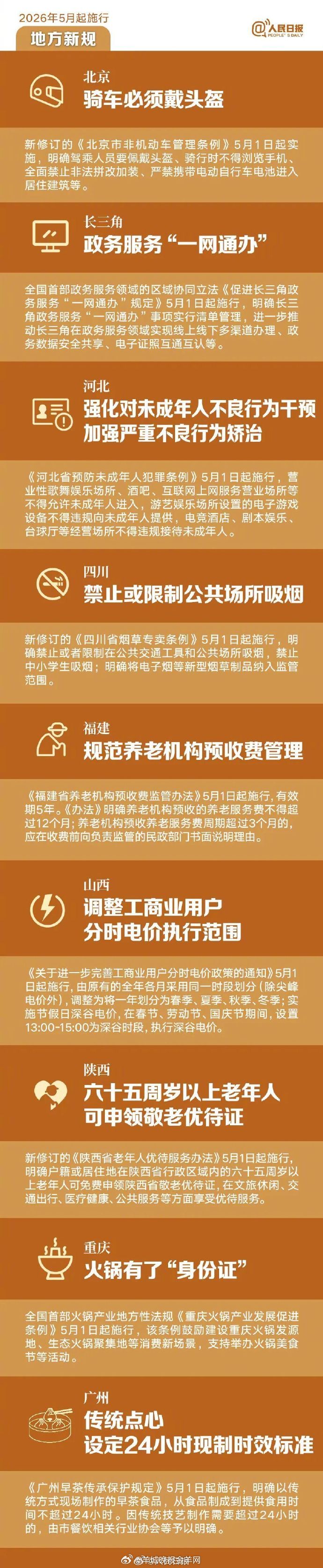 【与你有关!#5月起一批新规将施行#】①#5月起未经同意不得发送商业短信#;②#民用无人机需实名登记激活#;③北京:骑车必须戴头盔;④四川:禁止或限制公共场所吸烟;⑤重庆:火锅有了“身份证”……更多,戳图了解↓↓↓