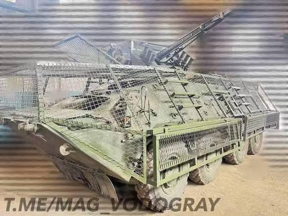 这样,无论无人机从哪个方向、哪个角度打过来,俄军装甲车辆外侧都有铁丝网保护。甚至,俄军还在铁丝网后面装有各种废钢板、防弹纤维,强化防御能力。