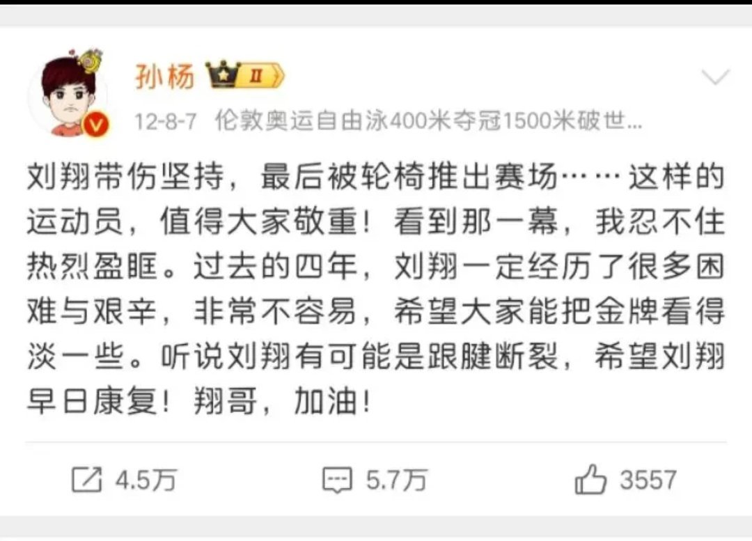 孙杨对低谷运动员的同理心孙杨 竞技体育从不只有荣光,低谷亦是常态。孙杨以亲身过往