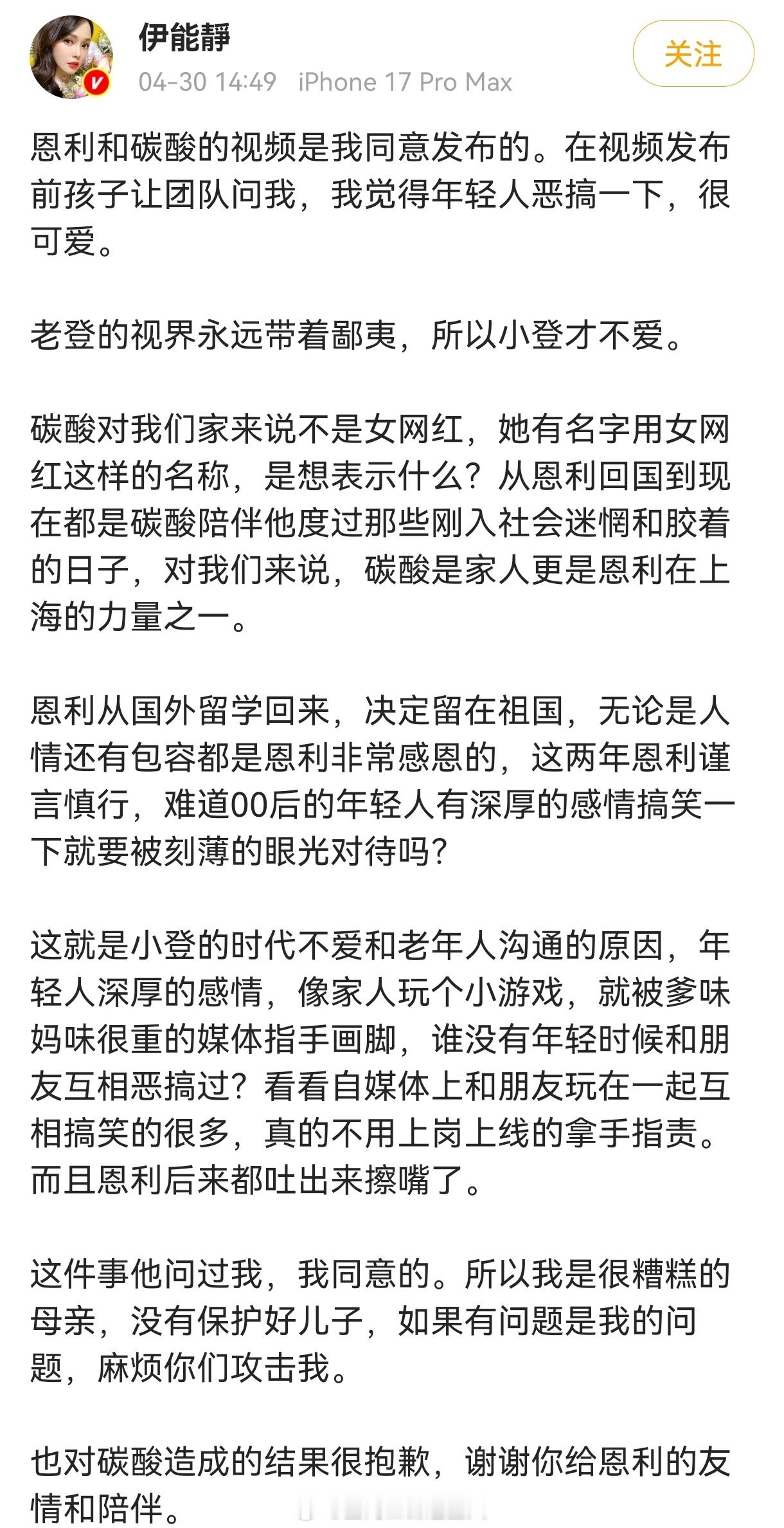 伊能静是不是弄错了一个重点,恩利的争议点是为什么从别人嘴里喝饮料,而不是为什么发