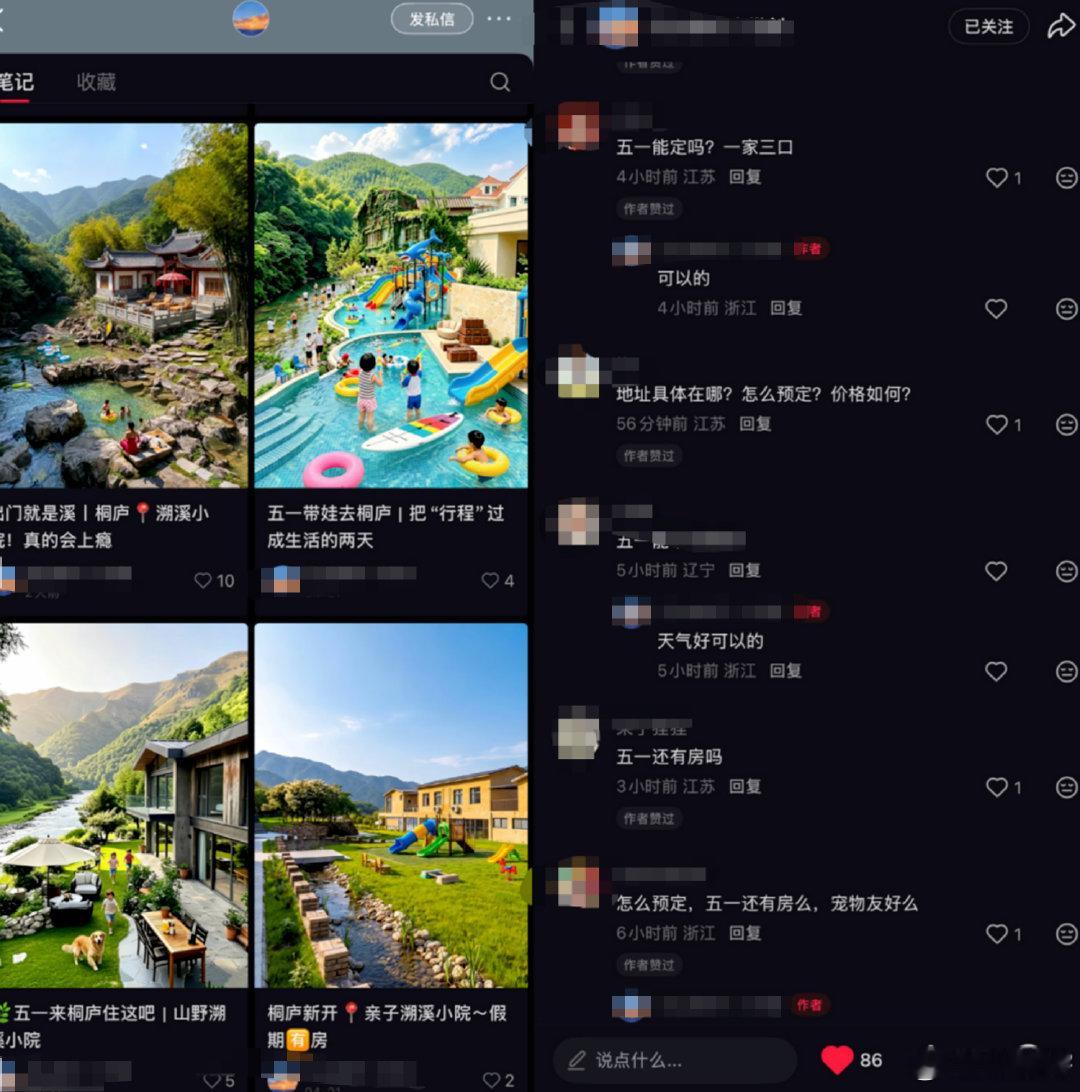 【民宿商家零成本批量生产种草笔记,民宿商家用AI假图引流】五一假期在即,蓝鲸新闻记者发现,社媒平台上大量“避世小院”“溯溪秘境”的帖子以精致画风吸引眼球。记者以民宿为关键词搜索发现,不少博主的种草笔记照片并非实景拍摄,而是商家利用AI工具批量生成的虚假宣传图。