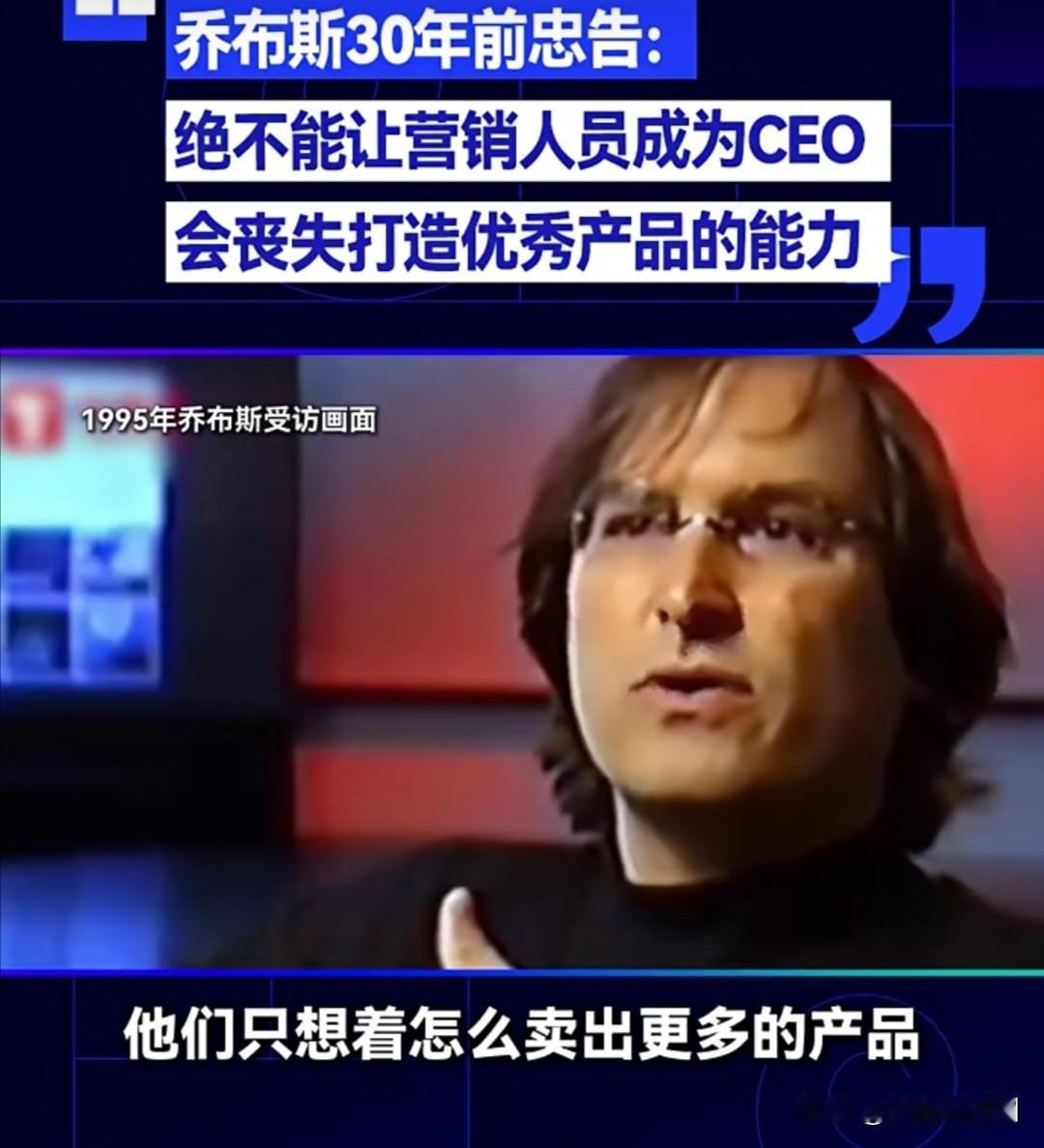 乔布斯30年前就警示过,科技公司一旦形成垄断,销售和营销人员就容易掌权,产品团队