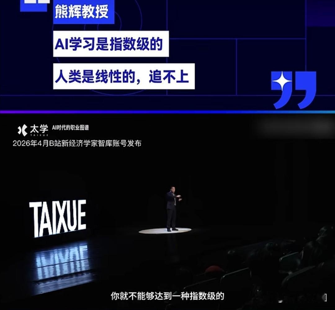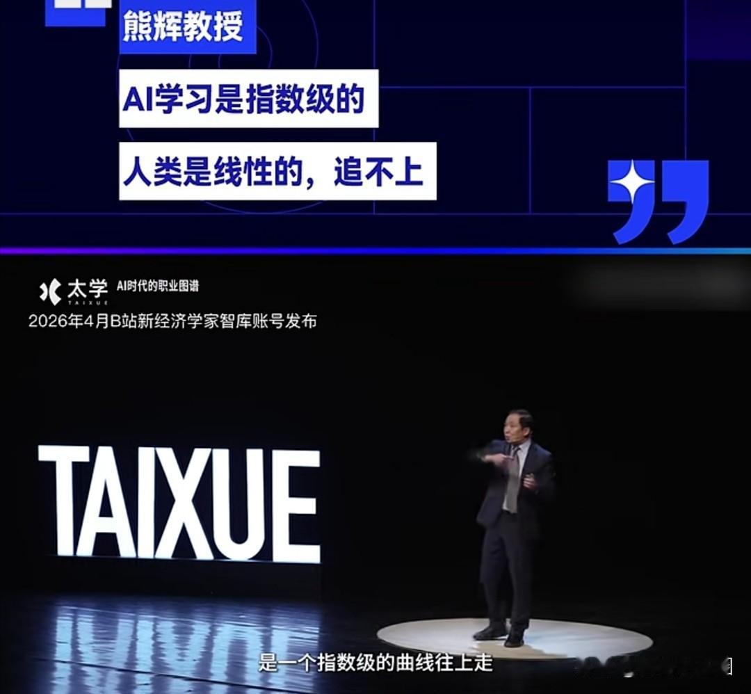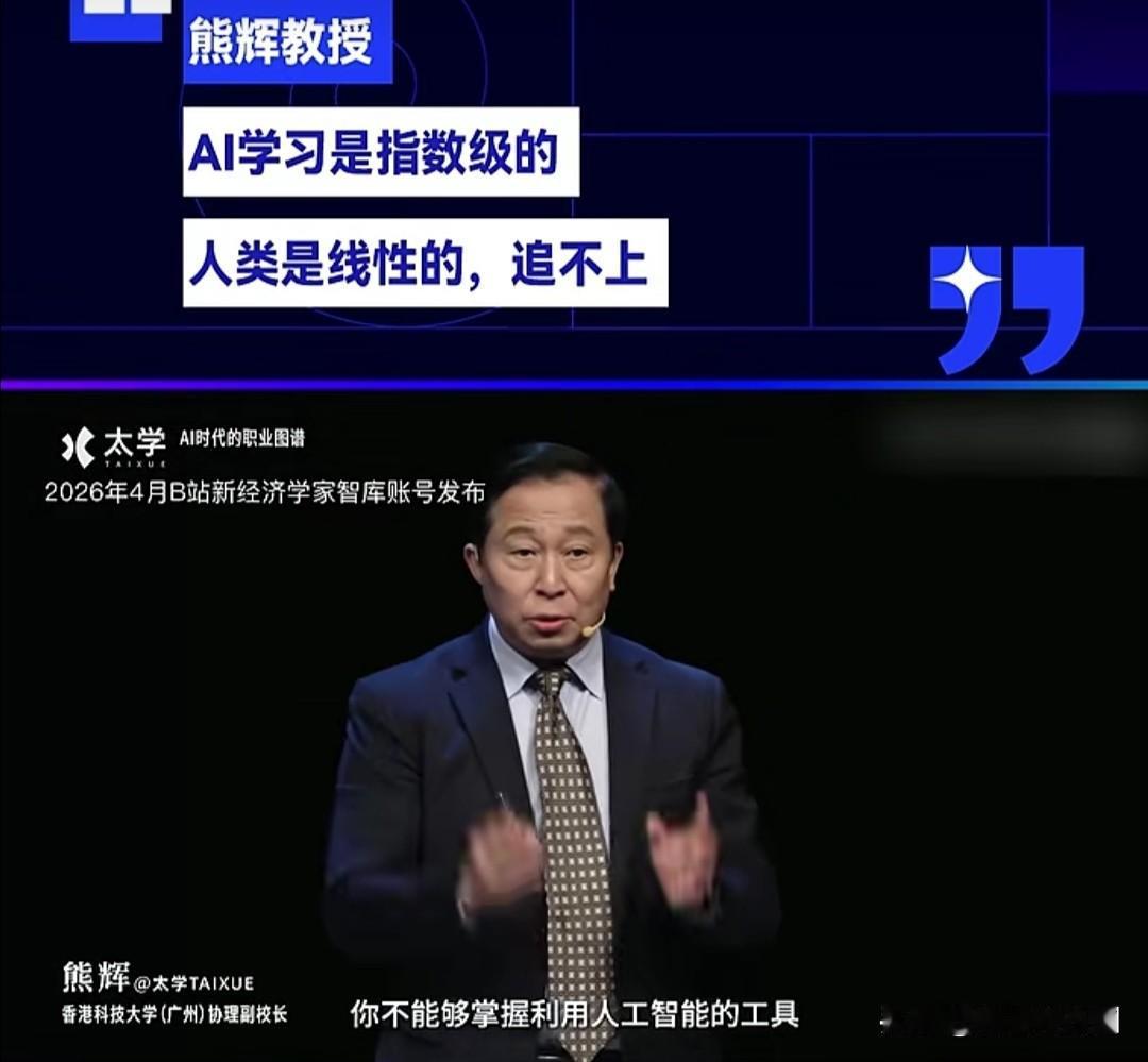 熊教授说,用AI工具学习的人,进步速度是指数级的;而用传统方式学习的人,进步速度只是线性的。