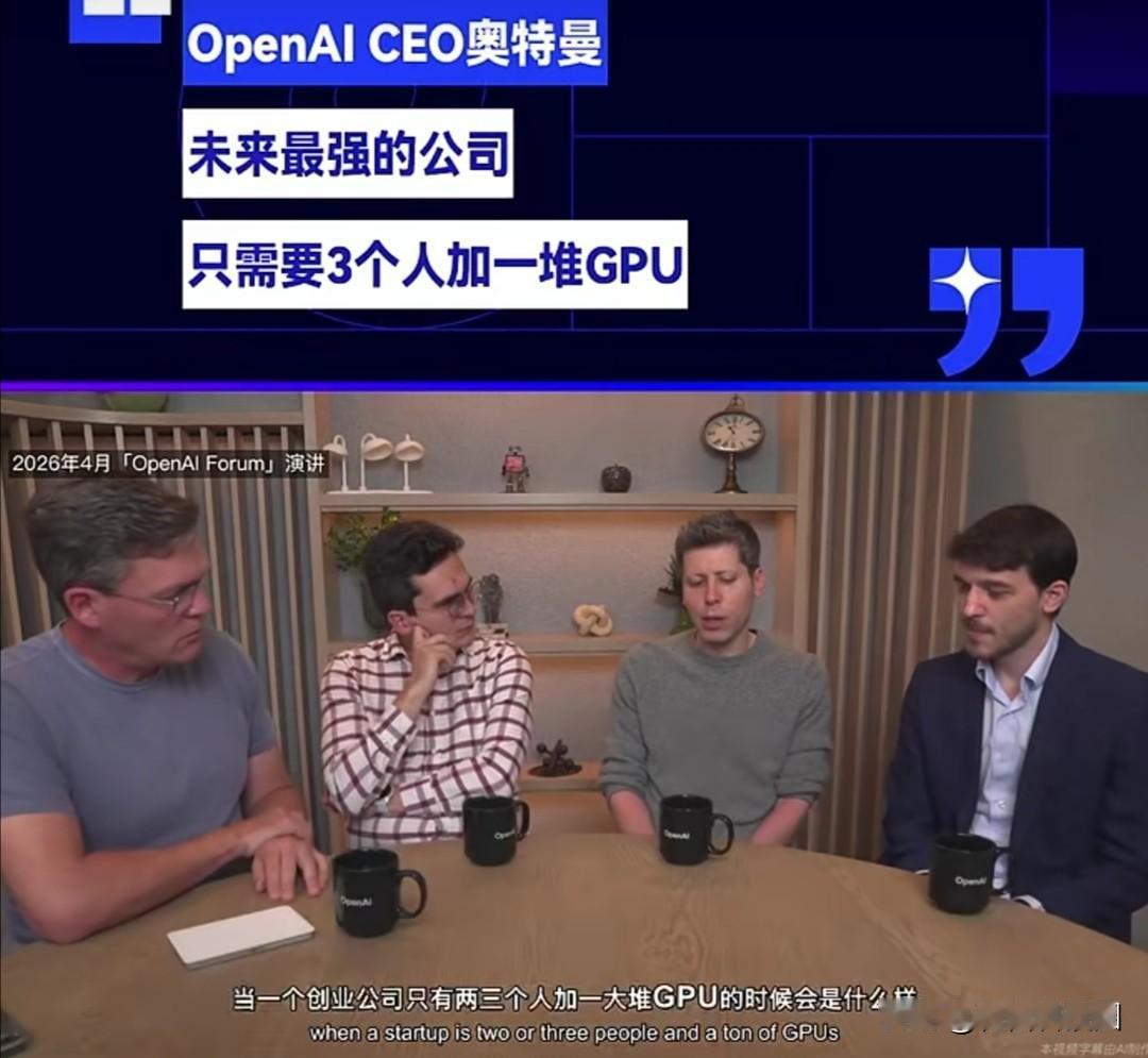 在近期的OpenAI论坛演讲中,萨姆•奥尔特曼提出了一个关于未来企业形态的构想:顶尖企业可能仅需3人团队搭配海量GPU即可运作。