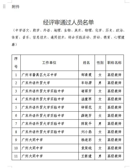25年度广州高级教师第一批名单公示🎉 2025 年度广州市中小学高级教师 职称