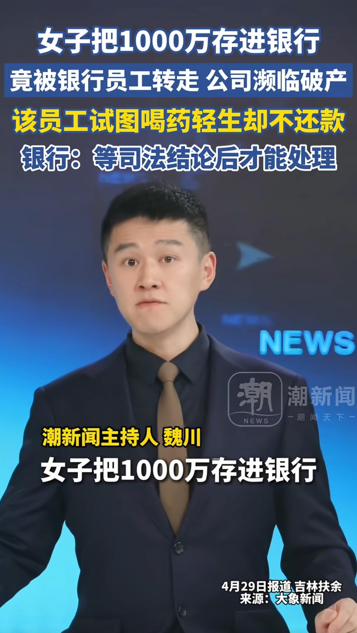 胆子太大了。吉林扶余,一名女子在村镇银行存了1000万元,1个月后女子取钱发现巨款不翼而飞,女子吓坏了,赶紧去询问当初办理业务的银行职员资金去向,对方却含糊其词,女子发现不对劲向总行投诉并追责,真相这才水落石出。原来钱被那么女职员伪造女子签名将钱转入自己名下投入了股市,另一位储户的800万存款也以同样手段被转走,现这名女员工无法还款试图喝药轻生,被救回后被警方控制,等待她的将是法律的严惩!