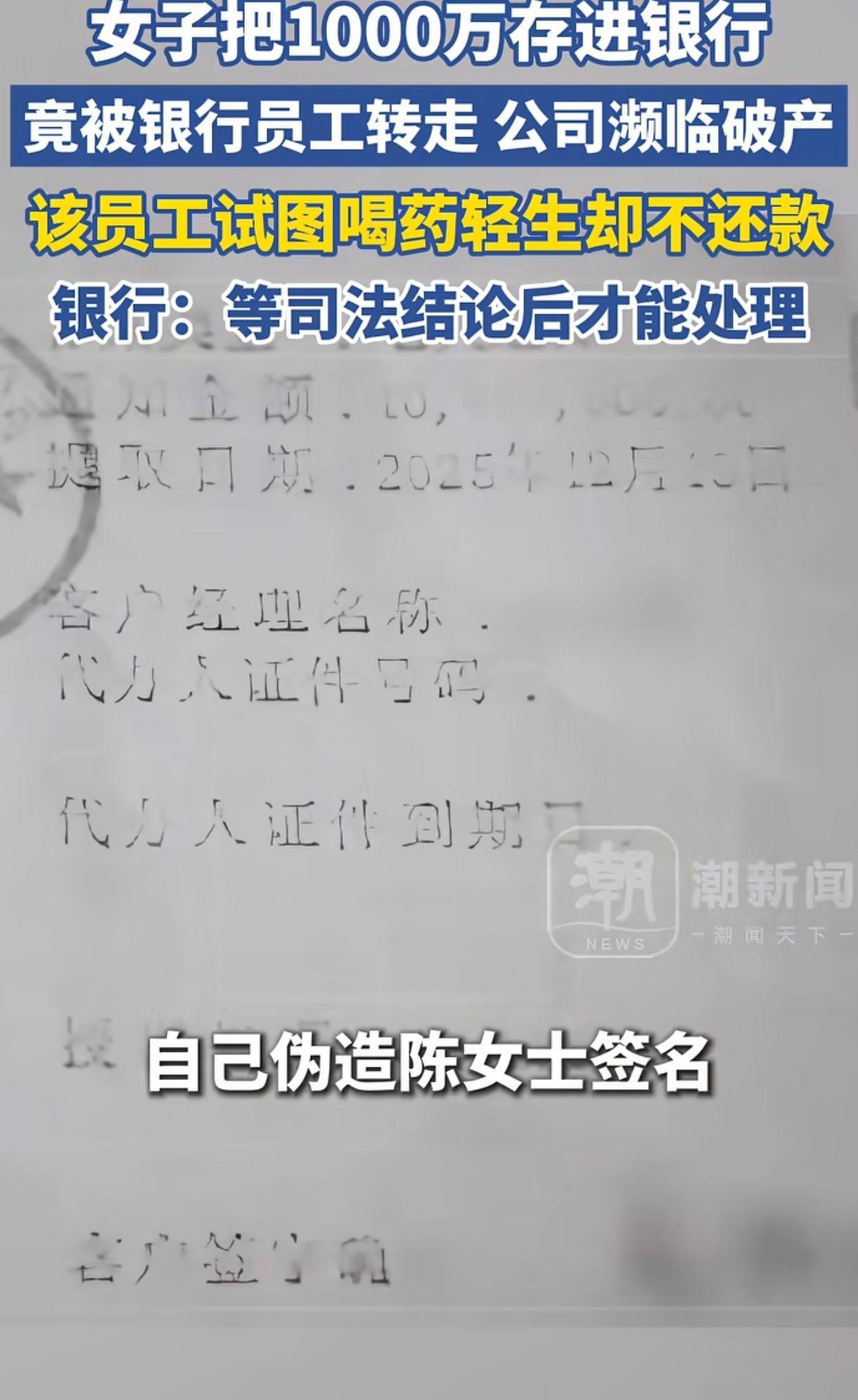 原来2025年12月13日这天,赵某丽就伪造陈女士签名挂失了旧卡、补办了新卡,将陈女士的1800万元赎回并转入自己账户里再投入了股市,赵某丽还用同样手段将另一名王女士800万存款转走。不得不说,赵某丽真是监守自盗,胆大包天啊!