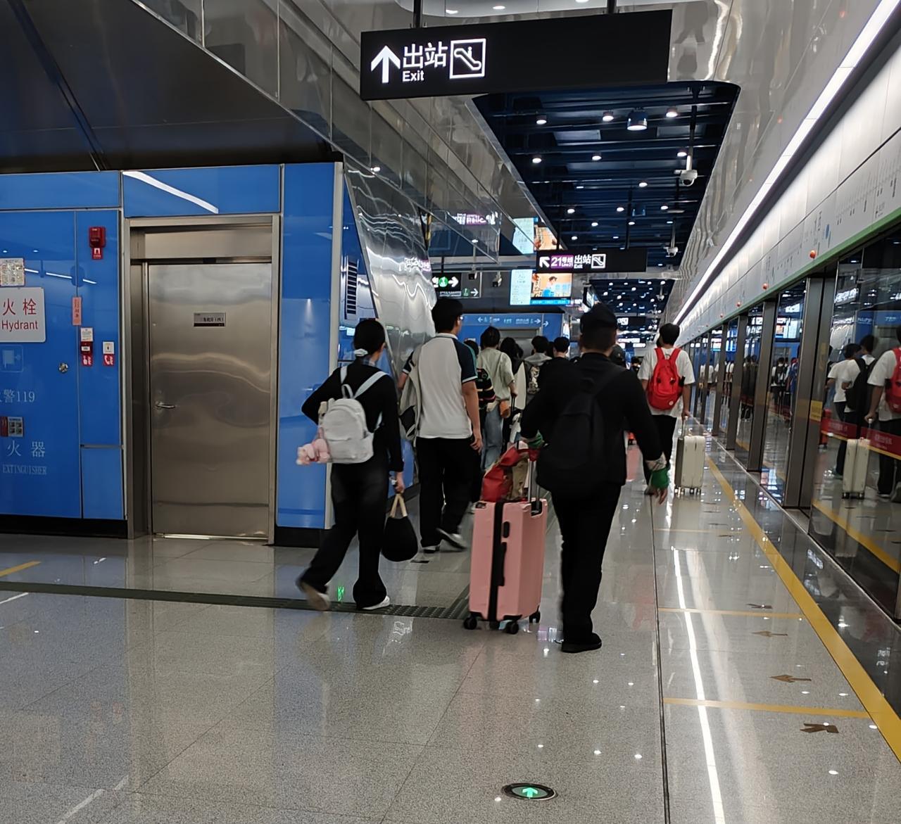 今天下午4点左右,广州地铁水西站里面就已经很多人了,很多人都是拖箱走的,镇龙,大