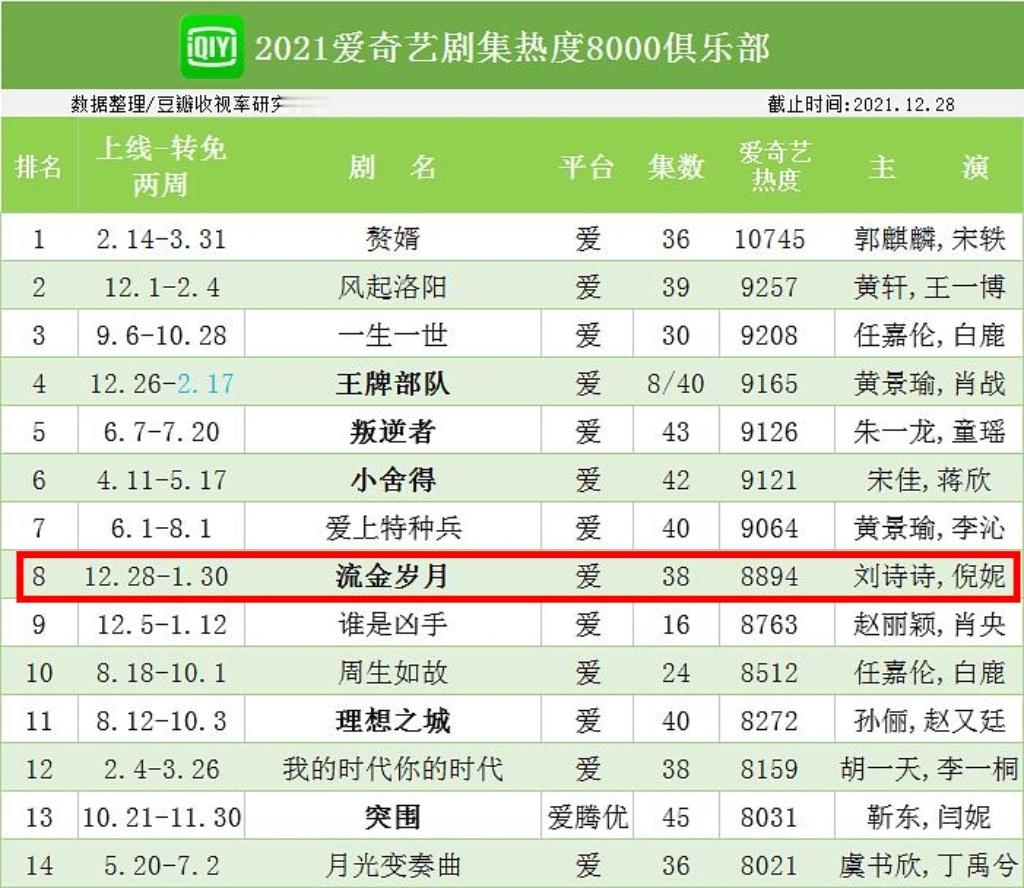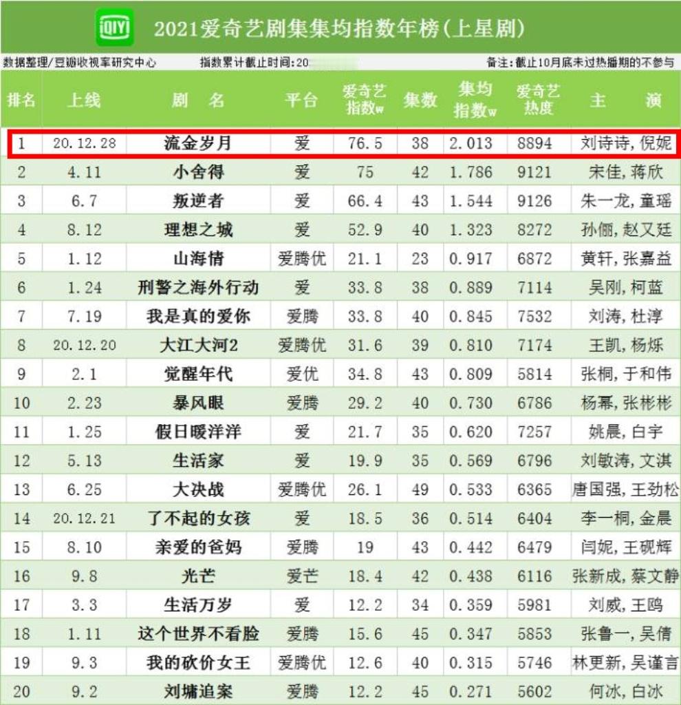 热知识:刘诗诗版流金岁月是新丽财报上连续五年利润率最高的大爆款不仅收视率是都市剧双年冠,网播量也是TOP1,热度TOP8刘诗诗一人单扛招商,招商品牌数33个,TOP2总台报告只发了刘诗诗蒋南孙一个人,流金岁月促进了央8剧集升级转型
