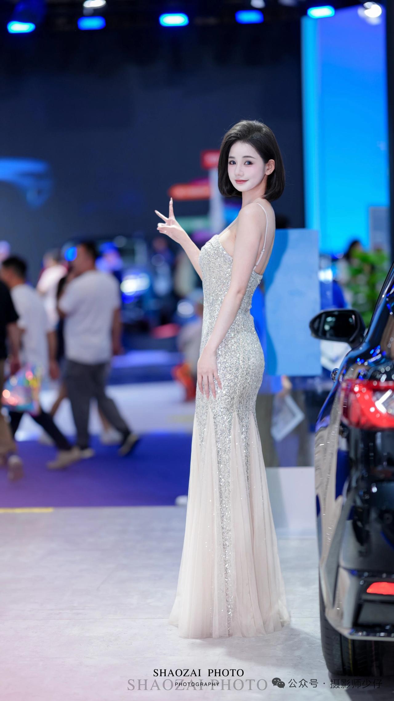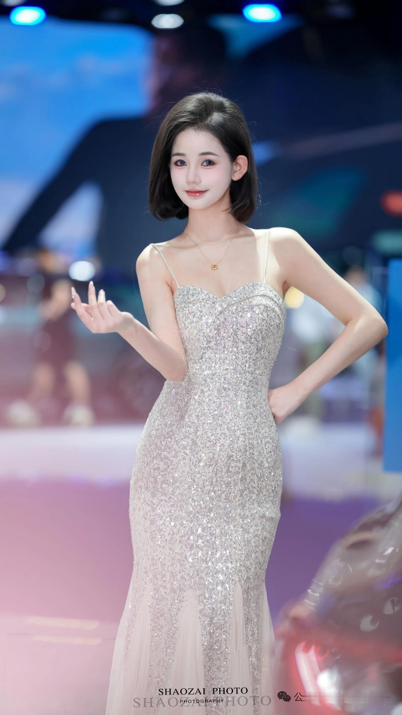 晒图笔记大赛银衣美人,笑语盈盈,一身闪耀的晚礼服,站在名车旁优雅地摆姿势。