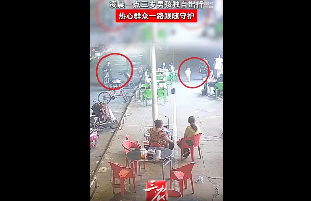 近日,湖北襄阳一名3岁幼童凌晨1点独自街头独行,热心路人发现后悄悄跟随守护并报警。