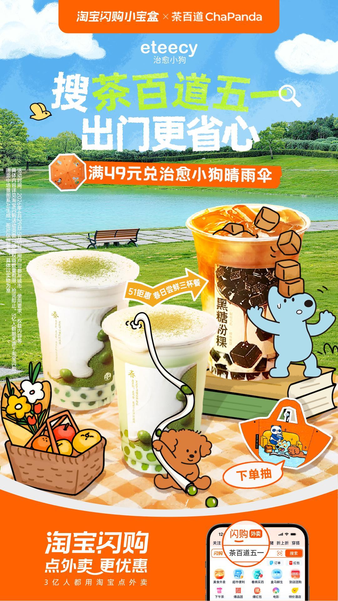 淘宝闪购给杭州人送大牌福利了 五一就想吃点软 fufu、糯叽叽的东西,茶百道黑糖粉粿上新,完全戳中喜好。Q 弹软糯裹着香甜黑糖,嚼起来超满足,五一直接 85 折,上淘宝闪购搜【茶百道五一】,免单红包顺手薅,下单抽联名出行包,实付满49元即有机会兑 治愈小狗eteecy 联名晴雨伞。假期甜份,稳稳超标。 出门用淘宝闪购 淘宝闪购小宝盒