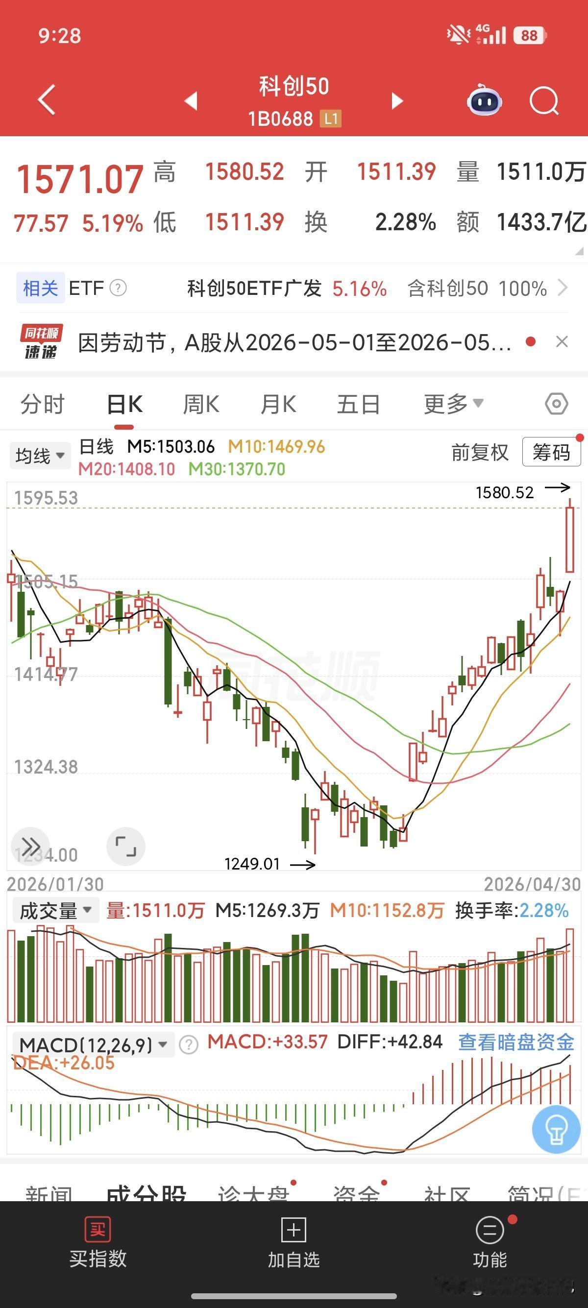 我最近短线就没做科创板,做的是沪深300里的部分老登股,没有科创板那么猛,但胜在稳,稳得一批,平均一两个点,还是知足了。