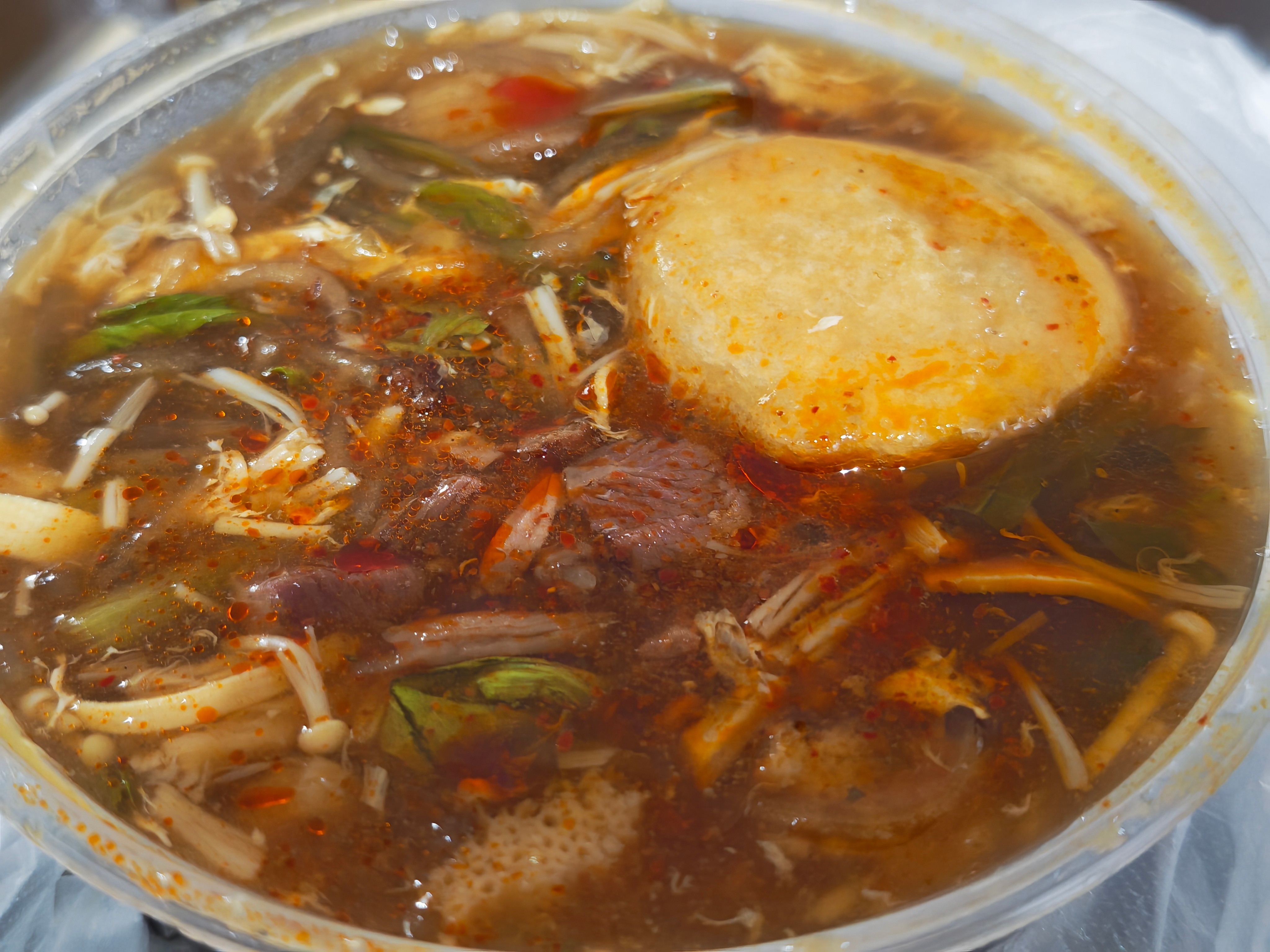 回无锡的第一顿,直接交给了小烧烤配酸辣汤,味道真不输其他地方!尤其是无锡的酸辣汤,口感很特别,介于牛肉粉和胡辣汤之间——你可以想象成胡辣汤减辣加醋,再添上油面筋、百叶丝、金针菇、木耳、香菇和鸡蛋。来这边一定要试试,其他地方真没有