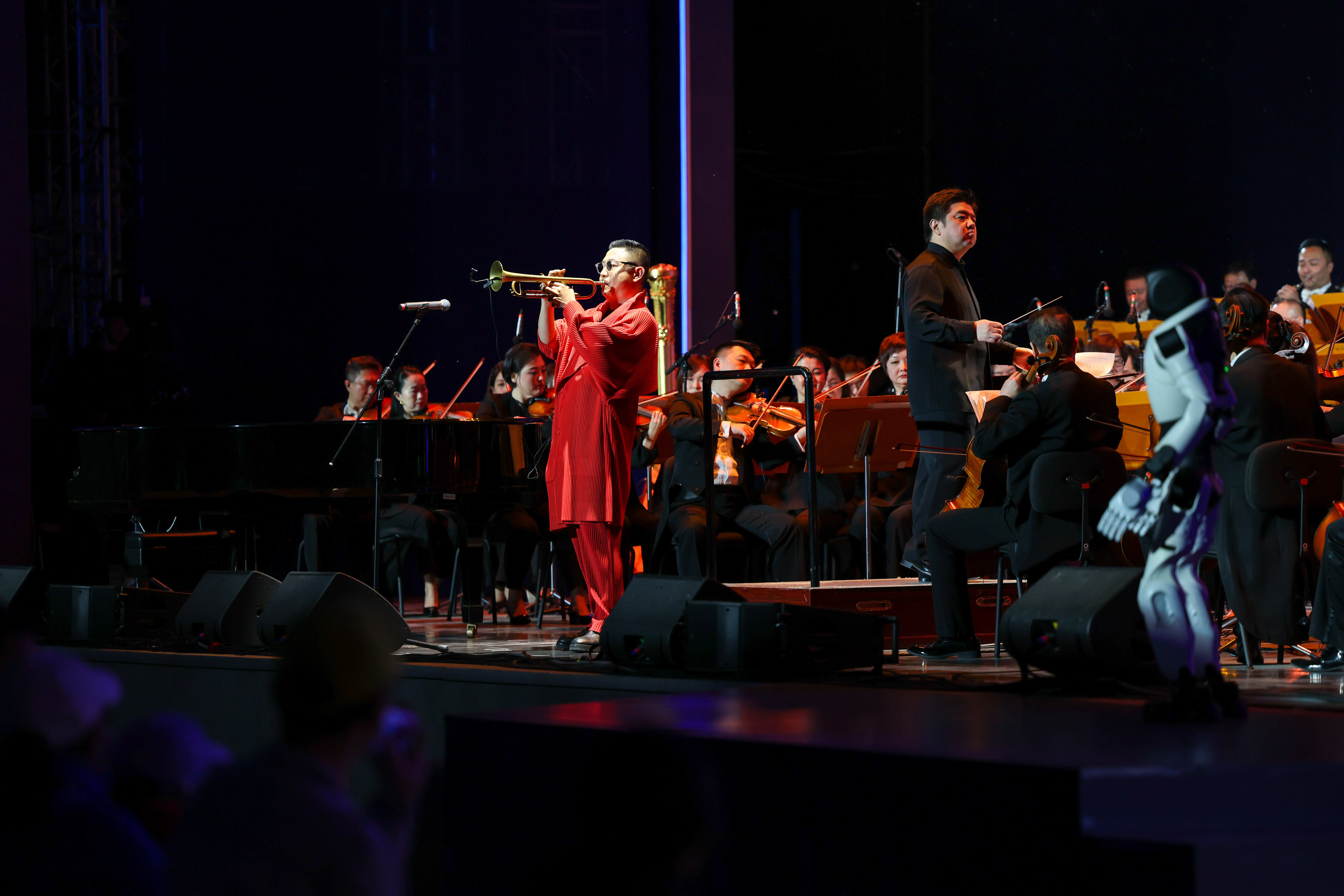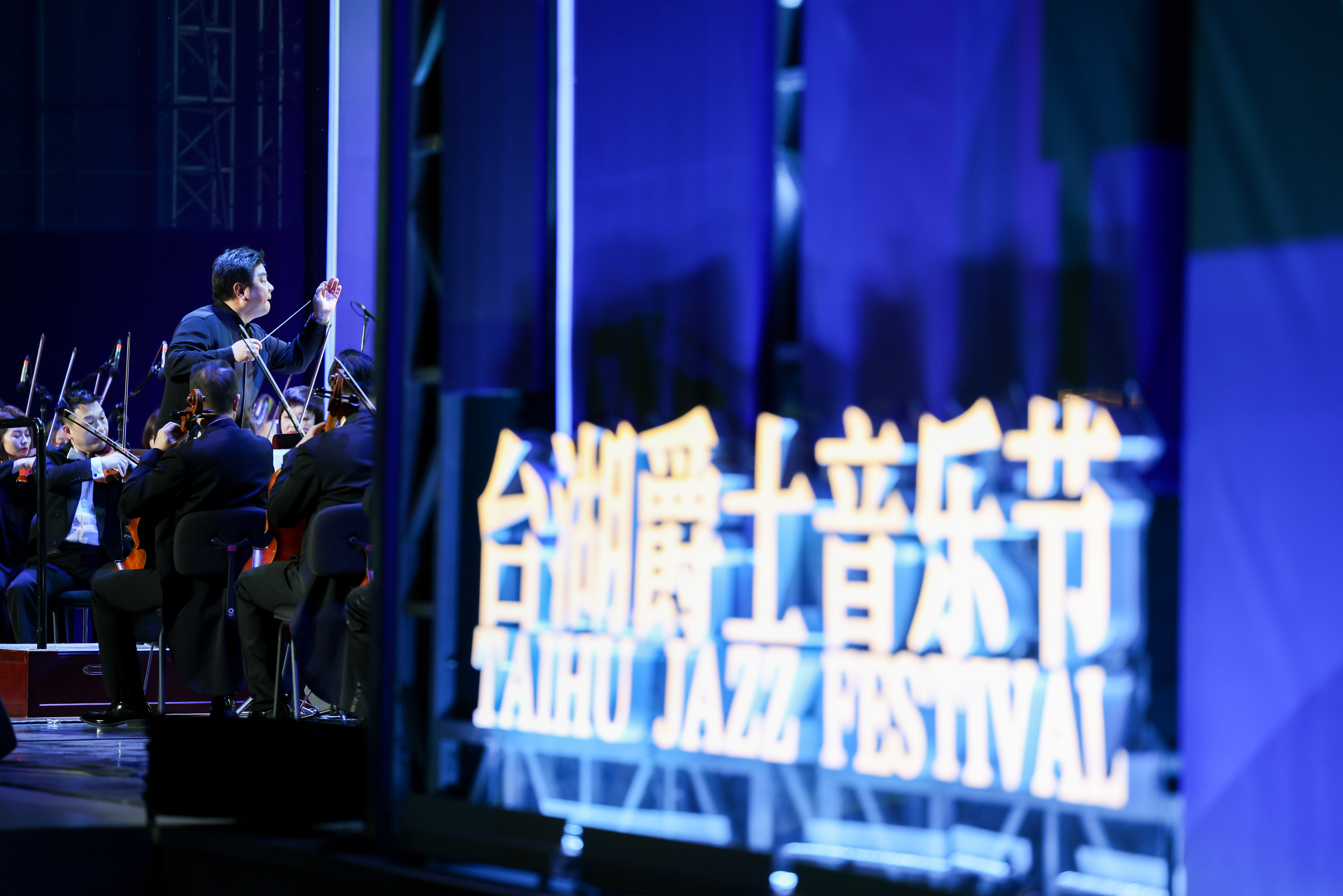 4月30日,在开幕式暨爵士乐日音乐会上,天津交响乐团指挥李飚在指挥演奏。