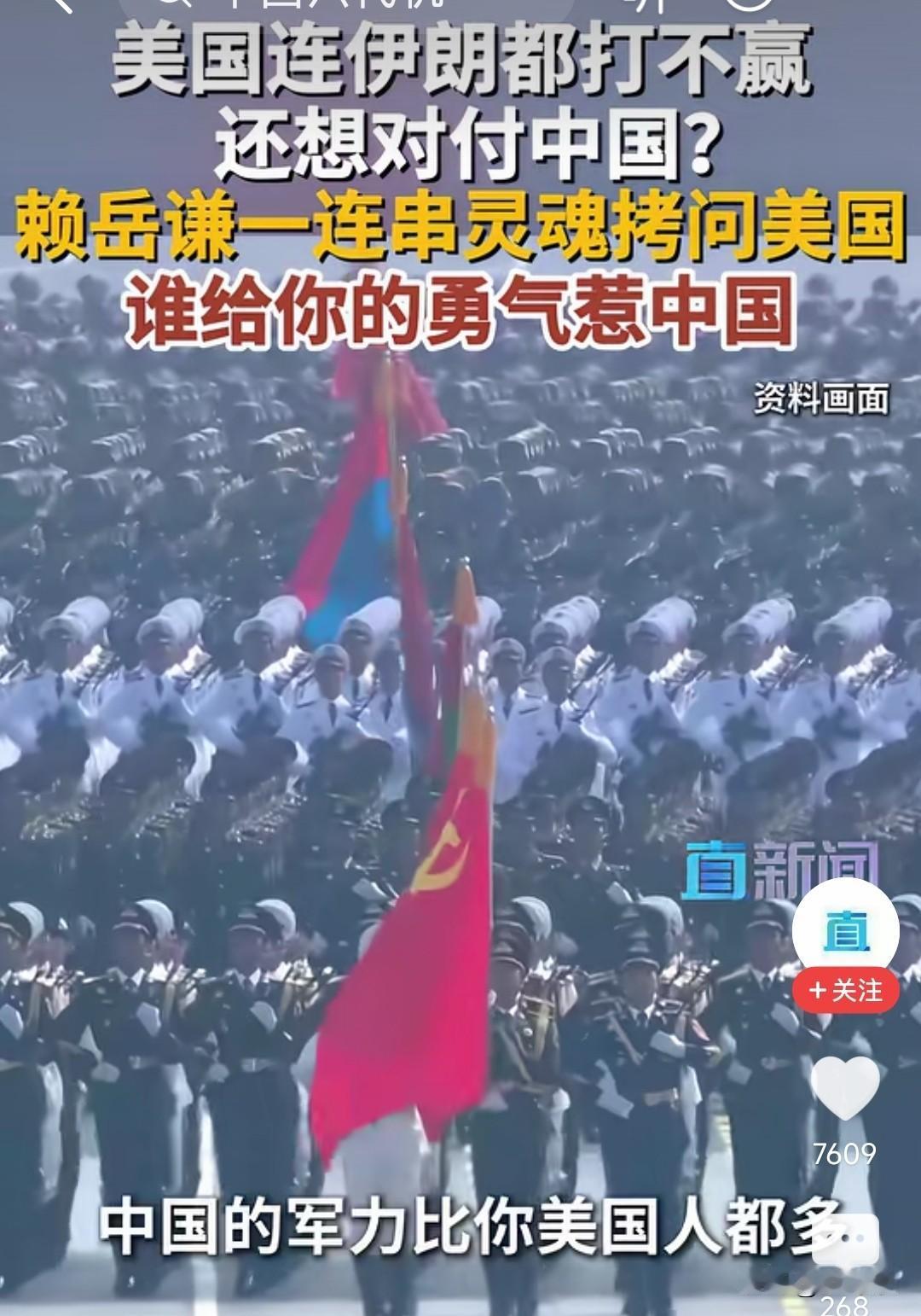 赖岳谦说的对,美国和以色列合起来都没打赢伊朗,还想来对付中国,你的勇气可嘉,但是这些勇气是谁给你的。