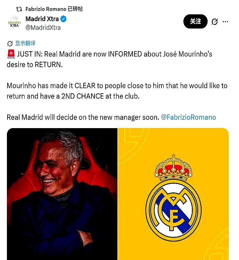 皇马主席弗洛伦蒂诺亲自出马,点将63岁的穆里尼奥为重建首选。那边,穆帅也早就跟身边人放话,想回皇马。