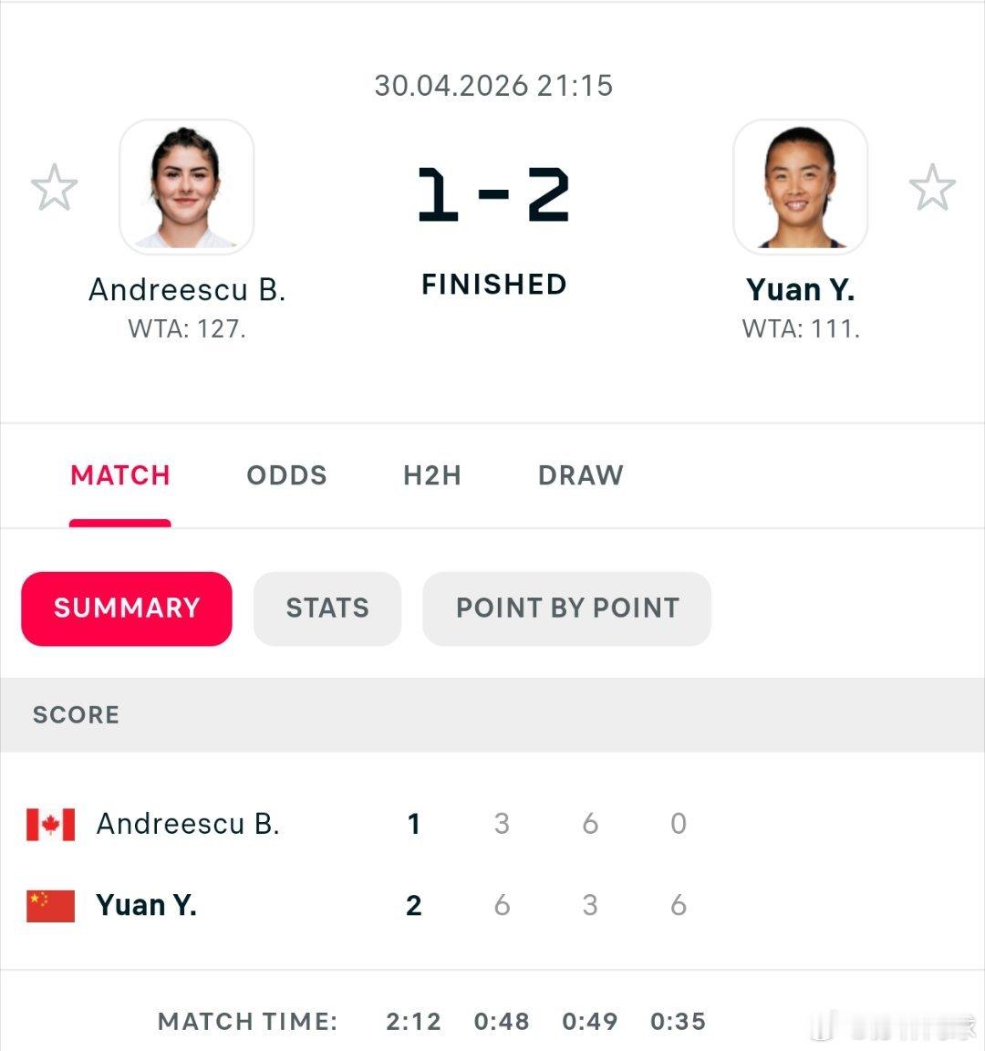 WTA125圣马洛次轮🇨🇳袁悦6-3/3-6/6-0送蛋安德莱斯库🇨🇦,晋级八强。收获27分,即时排名118。网坛风云wta