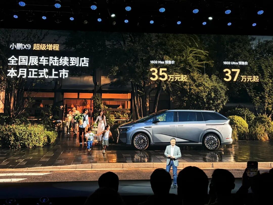 小鹏汽车旗下首款增程车型终于揭开了神秘面纱。日前,小鹏X9超级增程正式开启预售,两个版本的预售价分别为35万元和37万元。目前在售的小鹏X9为纯电动力,售价为35.98-41.98万元。在预售发布会现场,小鹏汽车CEO何小鹏透露,小鹏X9超级增程全国展车陆续到店,将于本月正式上市。