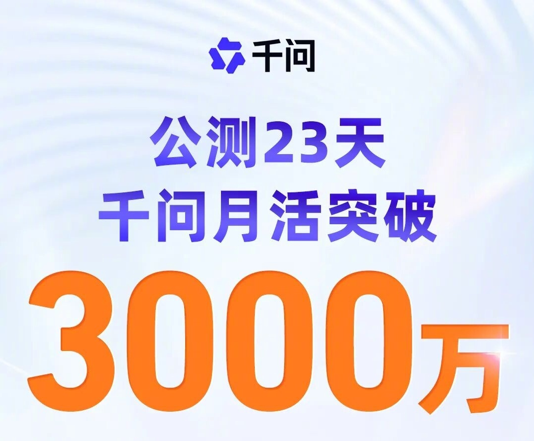 2025年12月10日,阿里巴巴官宣,千问APP上线23天,月活突破3000万,创全球AI应用增长新纪录。