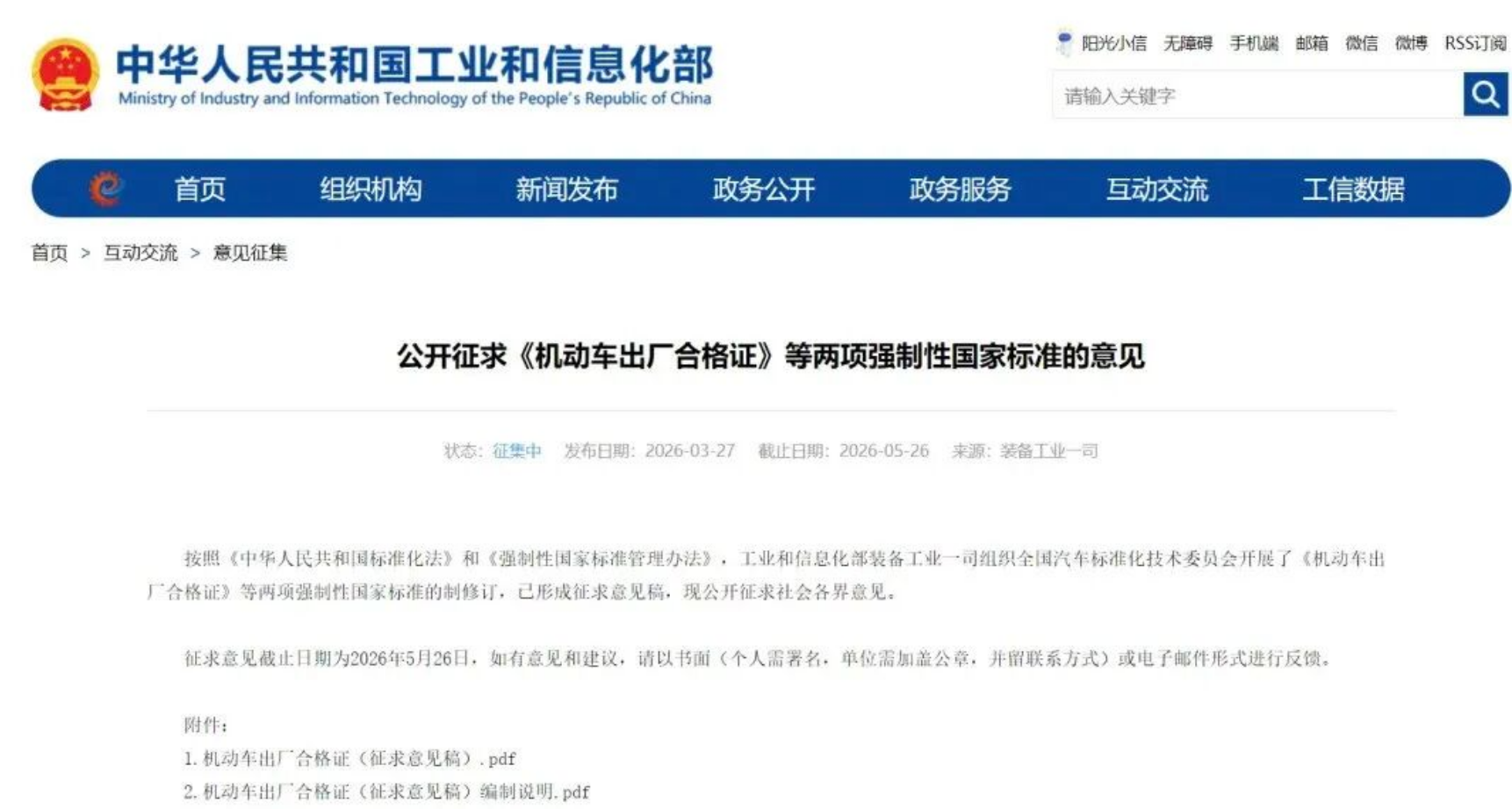 近日,工业和信息化部发布《汽车、挂车及汽车列车外廓尺寸、轴荷及质量限值》征求意见稿,截止日期为2026年5月26日。该征求意见稿主要关注内容如下: