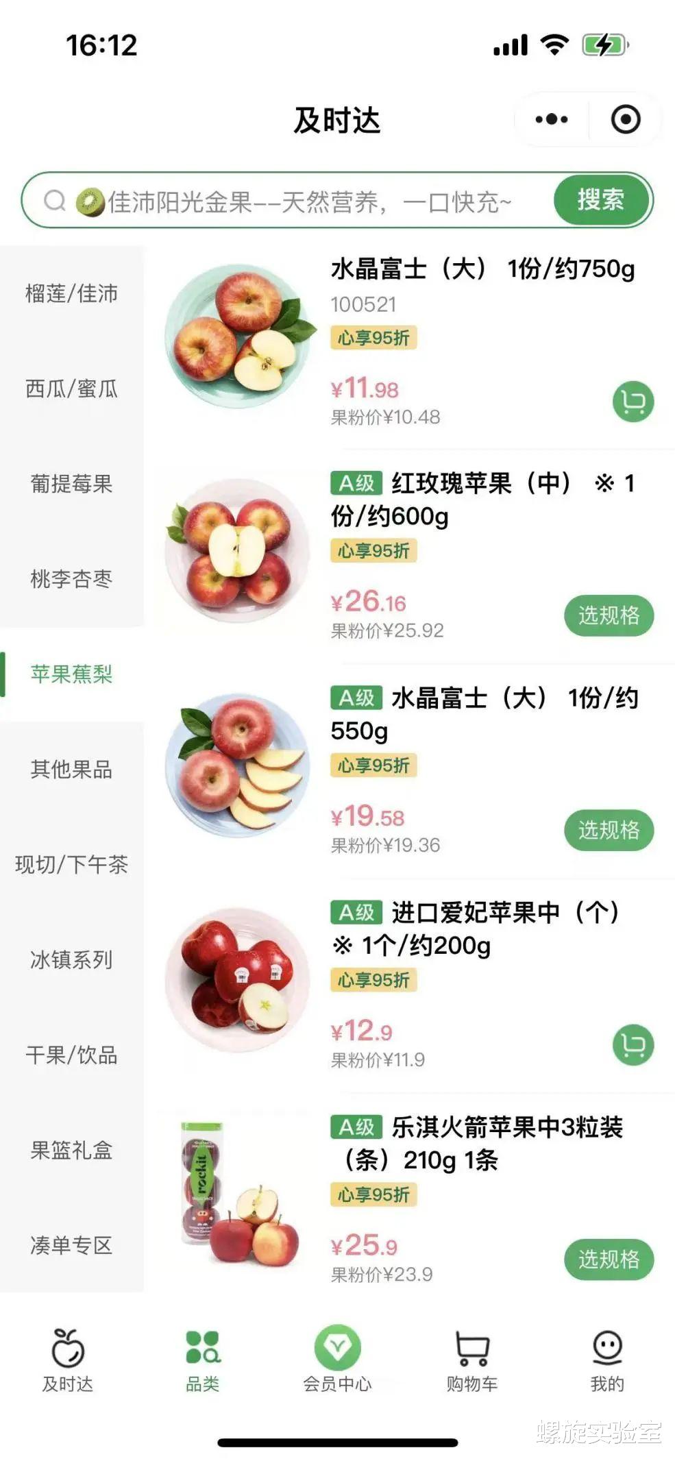 不过,除了常规水果之外,百果园还有许多比较罕见的水果品种,以苹果为例,最便宜的品种一斤还不到10块钱,但最贵的进口爱妃苹果,一斤就要接近30块钱。
