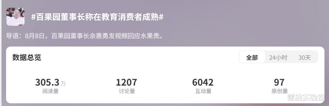 尽管百果园紧急澄清称“断章取义”,但依然阻挡不了百果园多次登上热搜的趋势。#百果园董事长称在教育消费者成熟#话题已有超300万阅读量,大部分消费者在留言中吐槽百果园,几乎呈现出一边倒的差评态势。