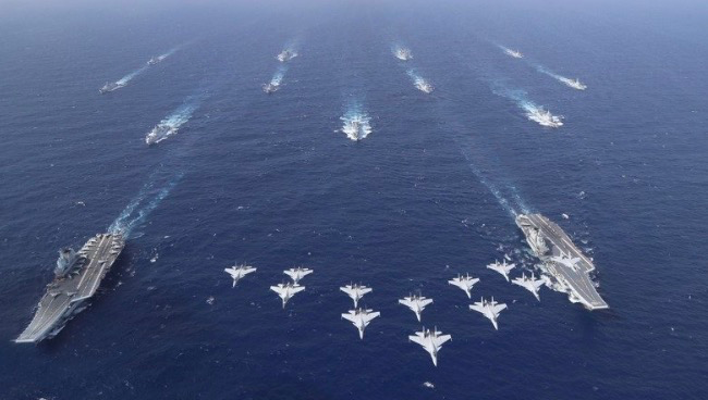 “第一岛链”内外,中美各2艘航母隔空对峙!根据台湾《中国时报》的报道称,有台当局官员透露:过去一个多月,解放军虽然未再度开启大规模军演,但他们发现,解放军正从黄海、东海、台海、南海一路往下,展开四海联动,并持续进行“全岛链的极限慑压”。