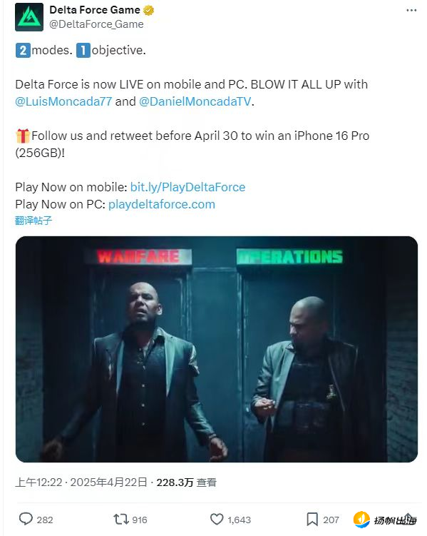 除了游戏内有助于扩展玩家群体的种种设计,《三角洲行动》还在游戏外迅速开展了全球性的电竞布局。开服不到一年就公布了搭建职业赛事体系的计划,紧随而来的是对应游戏内两种模式的“烽火世界杯”和“全面战场国际邀请赛”,包括中国大陆、北美、欧洲、中东、拉美、泛太平洋、日韩等八大赛区,几乎可以说是覆盖全球。体系化的全球赛事,能够增加高对抗性竞技游戏的用户粘性,并且进一步拓展市场。而在投放买量上,《三角洲行动》的海外广告注重本土化策略,专门邀请了犯罪题材知名美剧的演员进行视频宣传,欧美音乐人为全球活动作曲,精准吸引海外用户。