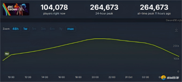 而这股鸭子撞上搜打撤的热潮还未消退,又有一款末日废土搜打撤乘上势头登顶榜首。《ARC:Raiders》,这款由腾讯投资、瑞典厂商开发的第三人称射击游戏,于10.30正式上线,一小时内就登顶steam热销榜榜首,同时在线人数突破26万,可谓是10月最后的一匹搜打撤黑马。