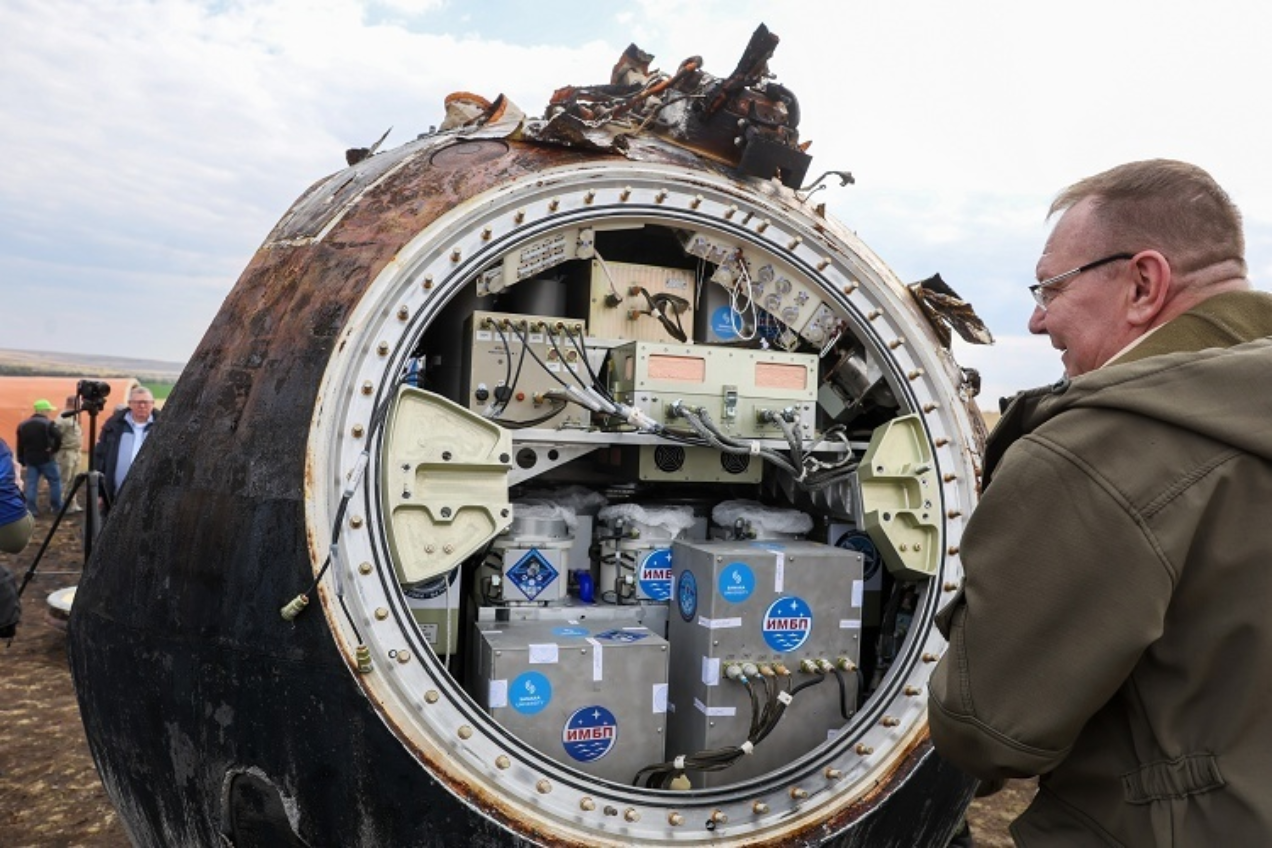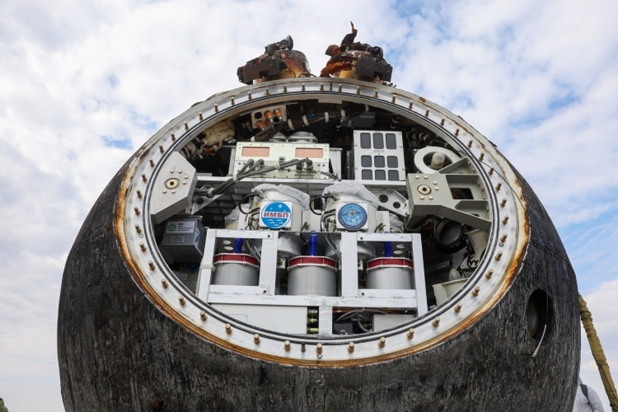 在本次实验当中,搭载了数量为75只的活体小鼠、1500只果蝇、20种植物种子以及多种类别的微生物样本。俄罗斯科学院的专家在对返回舱进行初步检查之际发现,75只参与实验的小鼠里有10只不幸死亡,而具体的死亡原因以及待后续做的研究分析。