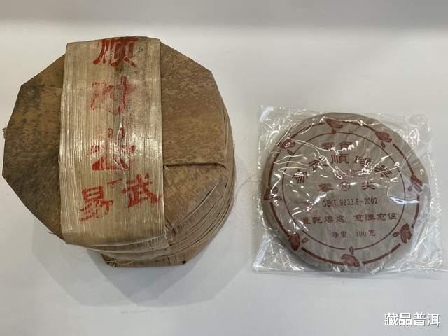 顺时兴号系列茶品自1998年开始生产,一直到2001年,都是裸饼状态。2002年,首批带包装的顺时兴诞生,每饼茶都有内飞和内票,外面有一层完整棉纸包装。