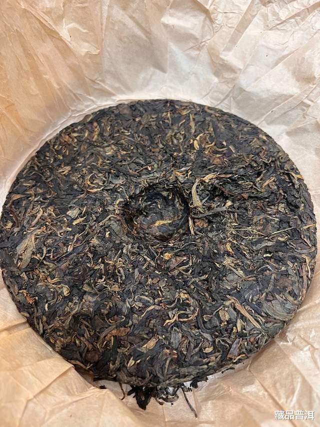 背面采用塞窝包法,是易武顺时兴的包装特色,跟国营勐海茶厂传统的一把抓包法完全不同。