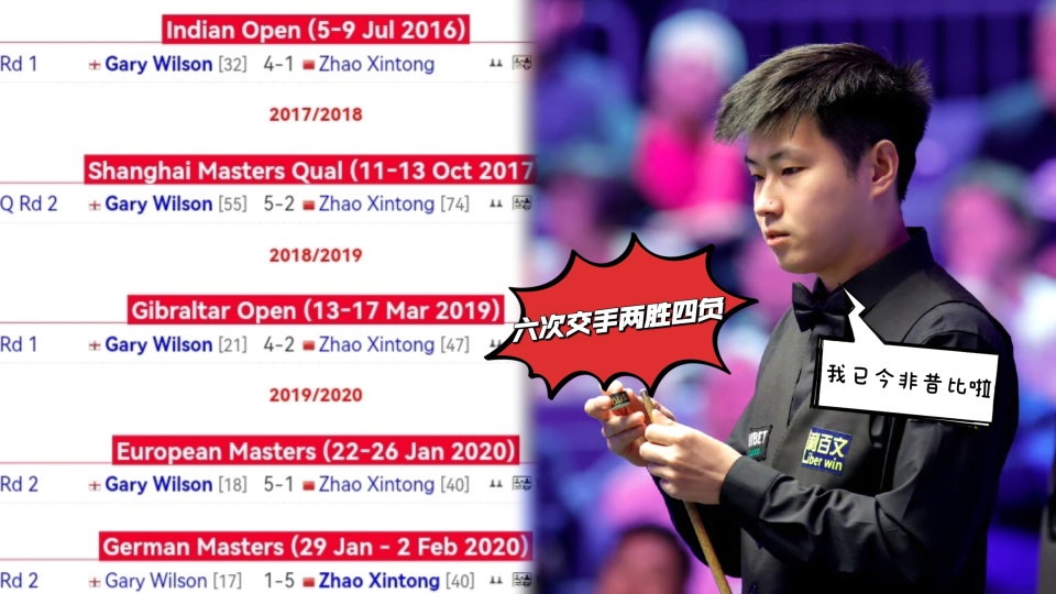 2026斯诺克大师赛:六次交手两胜四负!赵心童再战威尔逊被看衰,简单失误成X因素