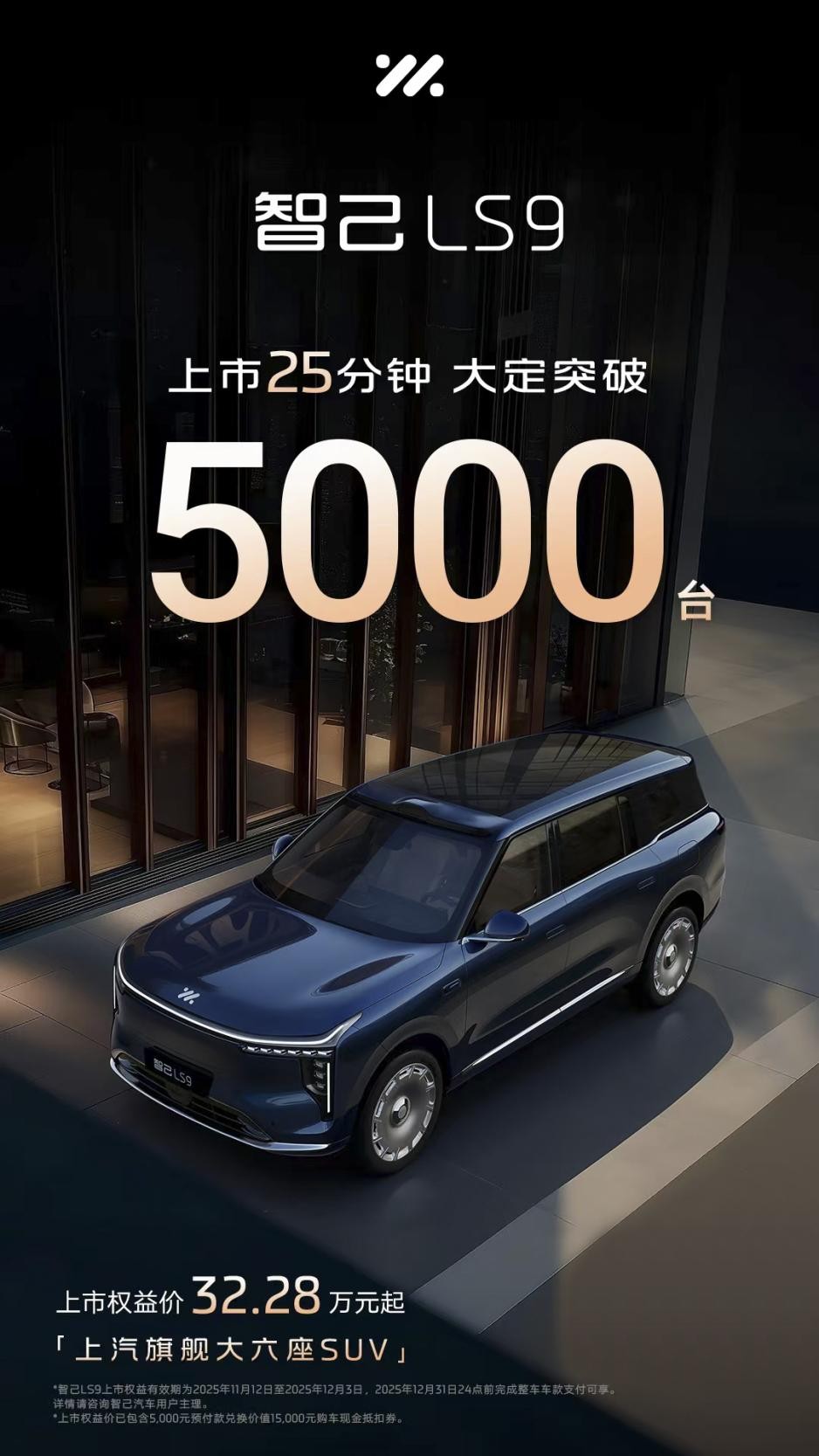 近年来新能源汽车市场蓬勃发展,中国新能源车企不仅在中低端市场,对外国品牌实现了反超,高端汽车市场的中国成员也越来越多。作为国内车圈一哥,上汽集团也发布了自己的旗舰大六座SUV,智己LS9。作为上汽旗舰,新车上市权益价32.28-35.28万元,上市25分钟,大定直接突破了5000台!