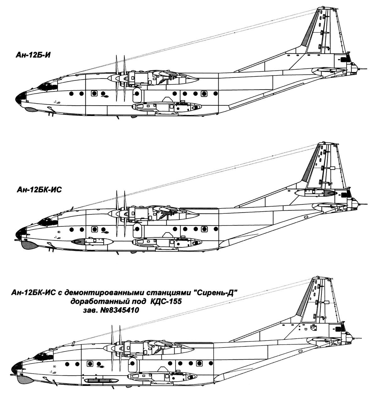因此1970 年开始大规模将 An-12BK 改装为 An-12BK-IS 版本,除两套“豆子”系统外,还配备了自动响应干扰站“丁香-D”。其中一对安装在机身前部两侧的桁架上,其余两个安装在垂尾上。第一批改造了45架,在1974年第二批改造了105架。