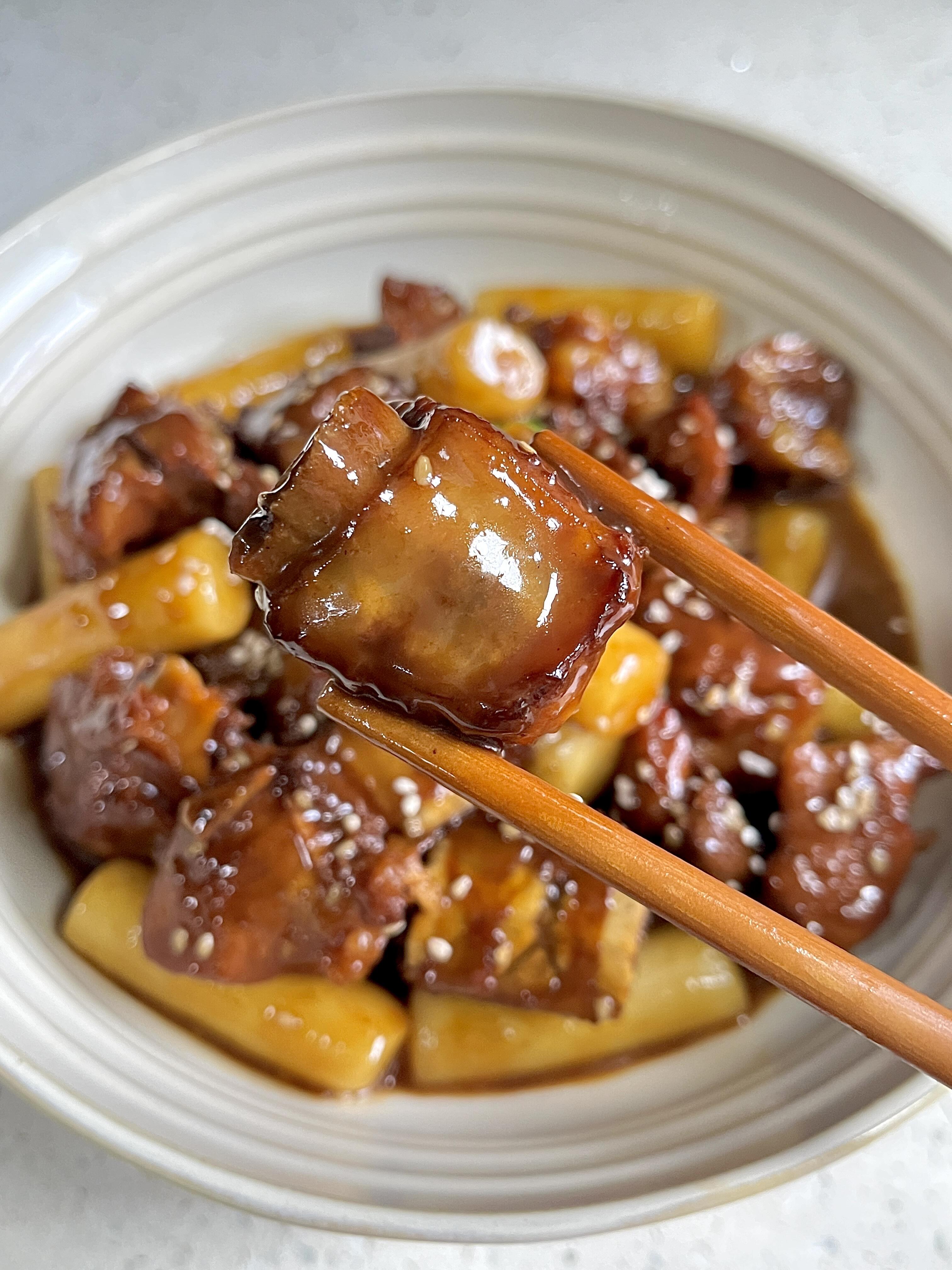 这里分享两个新手必看的小技巧:一是煎排骨时用中小火慢煎,别着急翻面,等一面定型再翻,外壳更完整;二是年糕最后放,焖煮时间别超过5分钟,不然容易化掉,喜欢有嚼劲的可以减少焖煮时间。