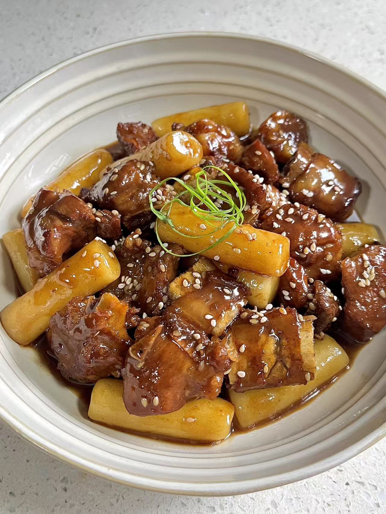 如今自己动手做这道菜,步骤和外婆当年差不多,只是工具更方便了。看着锅里咕嘟咕嘟冒泡的酱汁,排骨和年糕在里面慢慢融合,满屋都是香甜的气息,就像回到了小时候的周末。盛盘时撒点葱花,红亮的酱汁裹着金黄的排骨和雪白的年糕,颜值超高。咬一口排骨,肉质软烂脱骨,年糕吸饱了肉汁,甜而不腻,每一口都是家常的温暖。