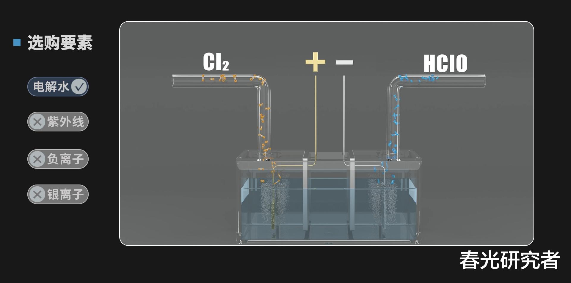 电解水就是电解自来水生成氯气和次氯酸,可以氧化分解细菌中的氨基酸,导致细菌失去活性。