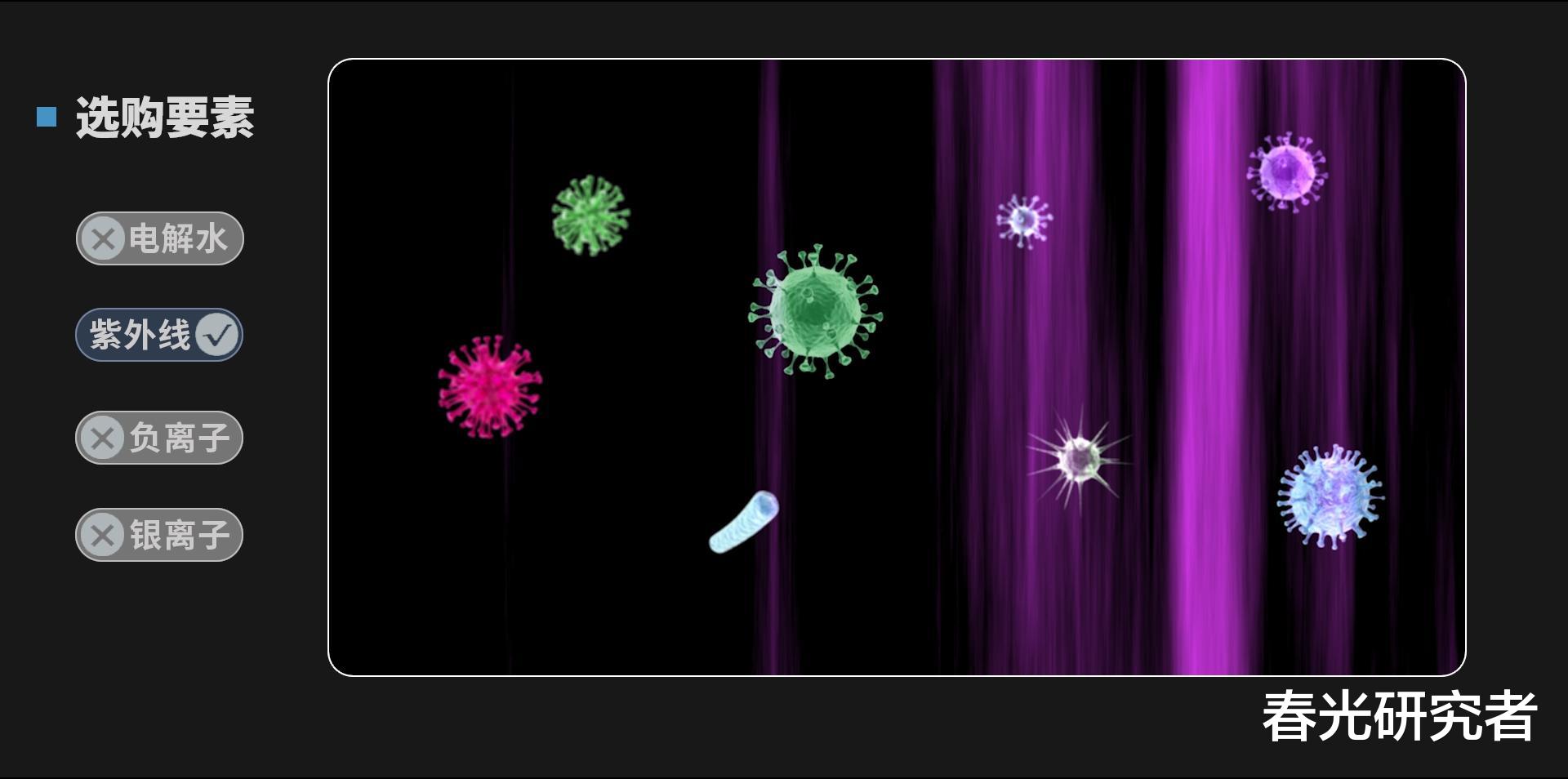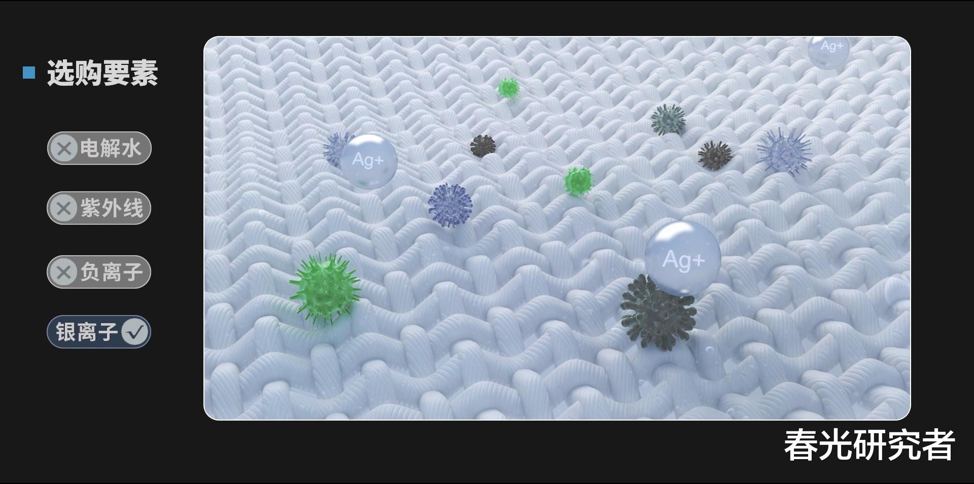 其实常见的除菌手段无非就是:电解水、紫外线、负离子、银离子。