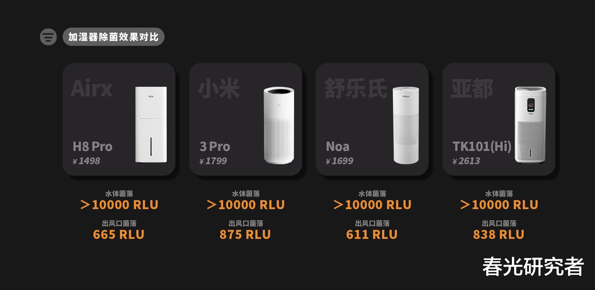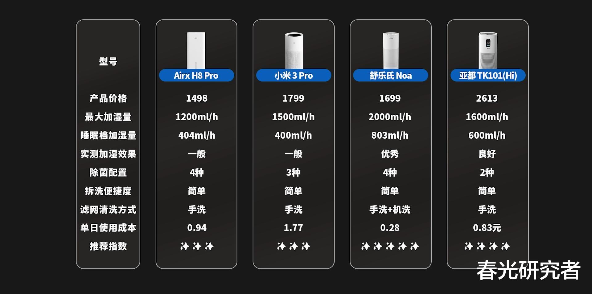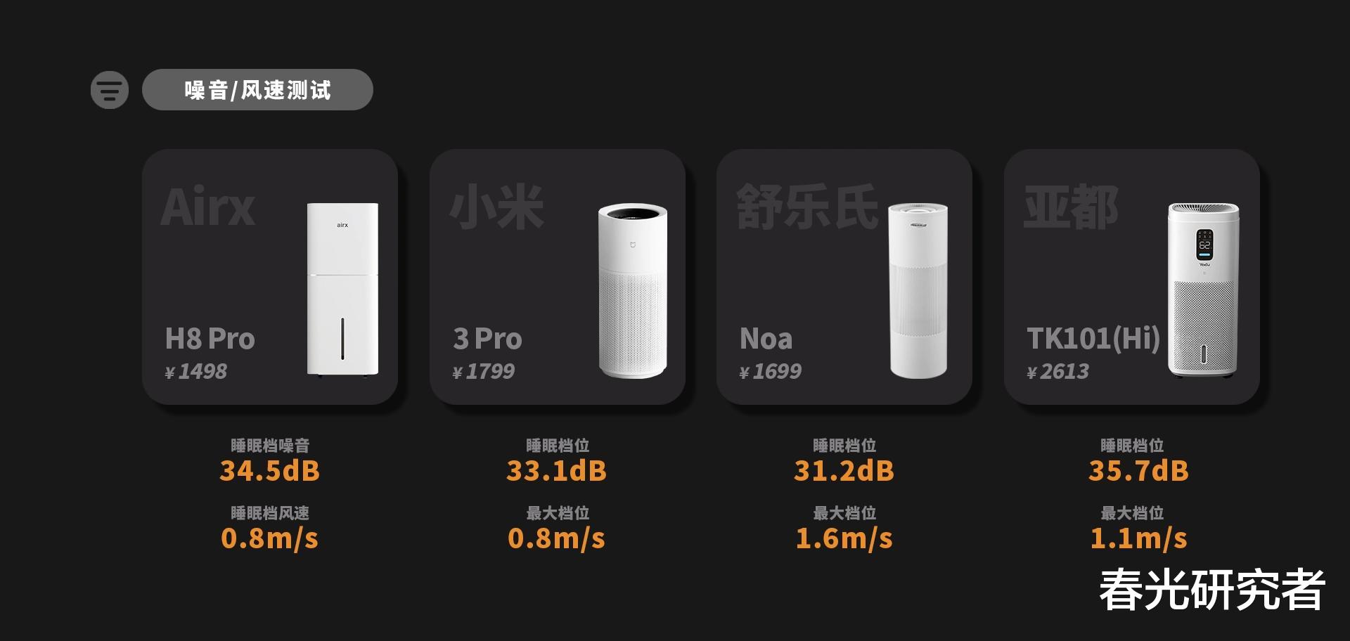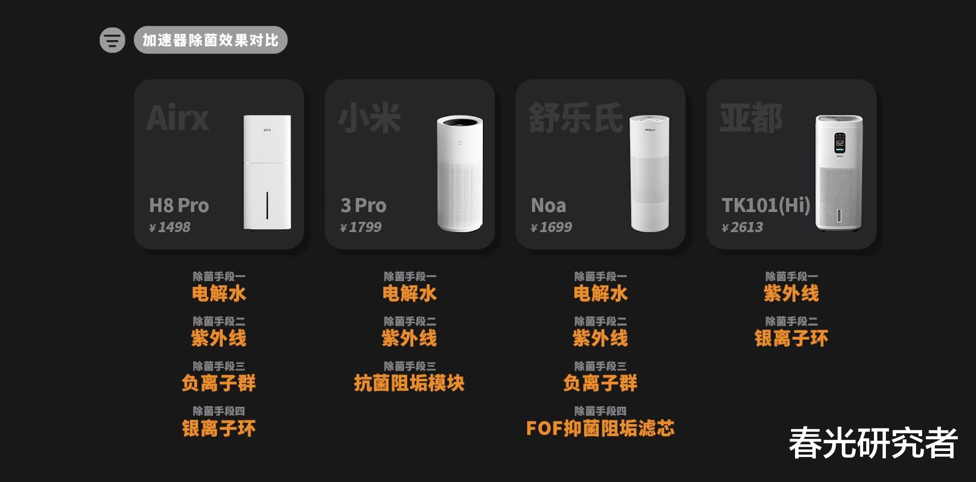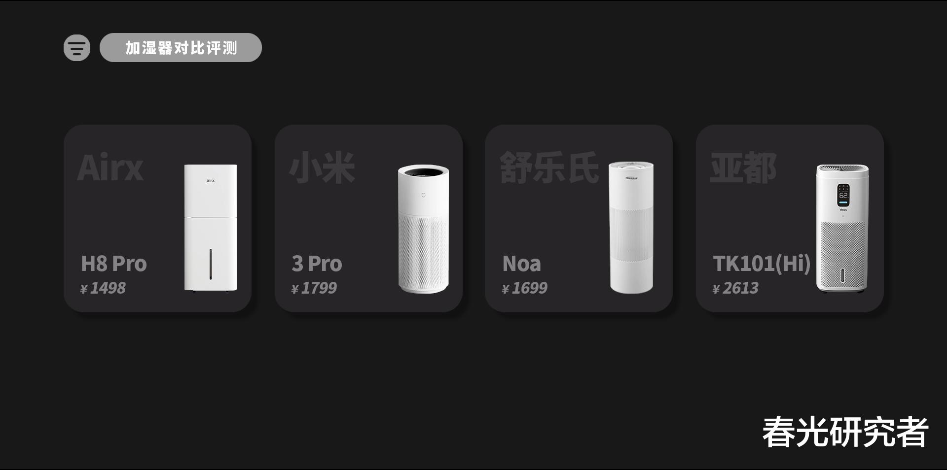 我们这次挑选的产品是:Airx H8 Pro、小米3 Pro、舒乐氏Noa以及亚都TK101(Hi)。