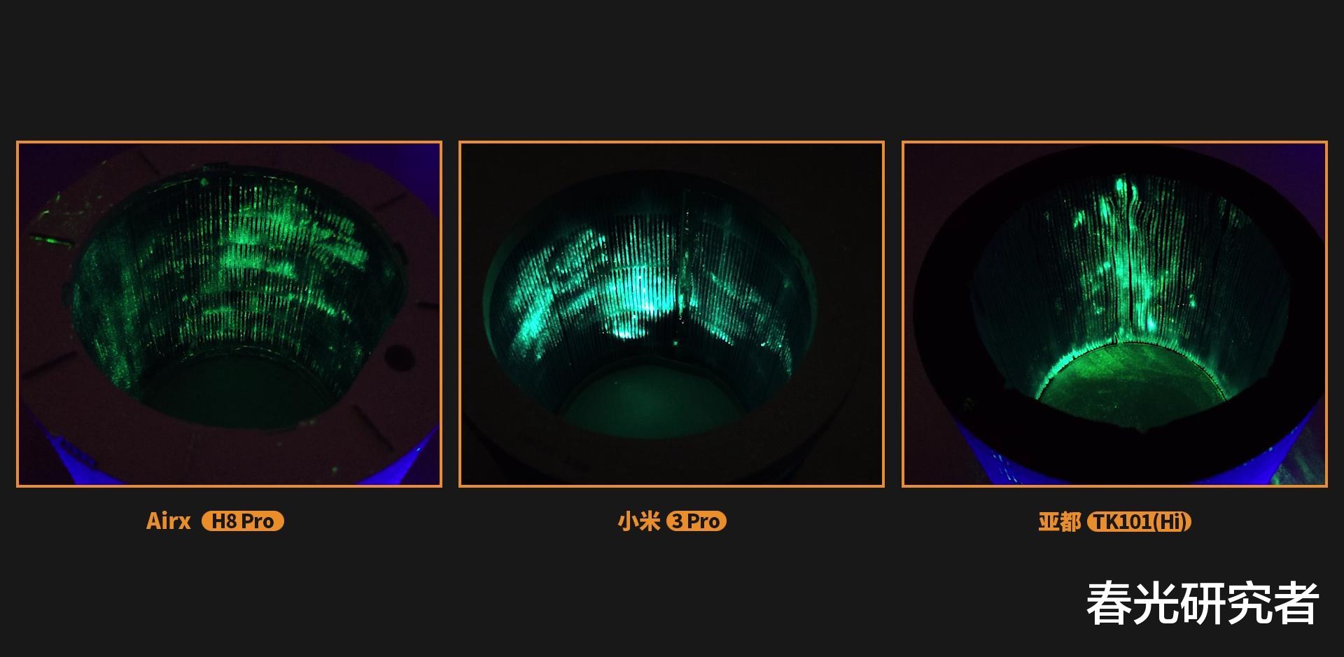 接着来介绍拆洗的便利程度,为了直观体现出每款产品的清洁难度,我们在水中加了一些荧光液,让它们正常运行24小时,让荧光液充分流通到各个位置。