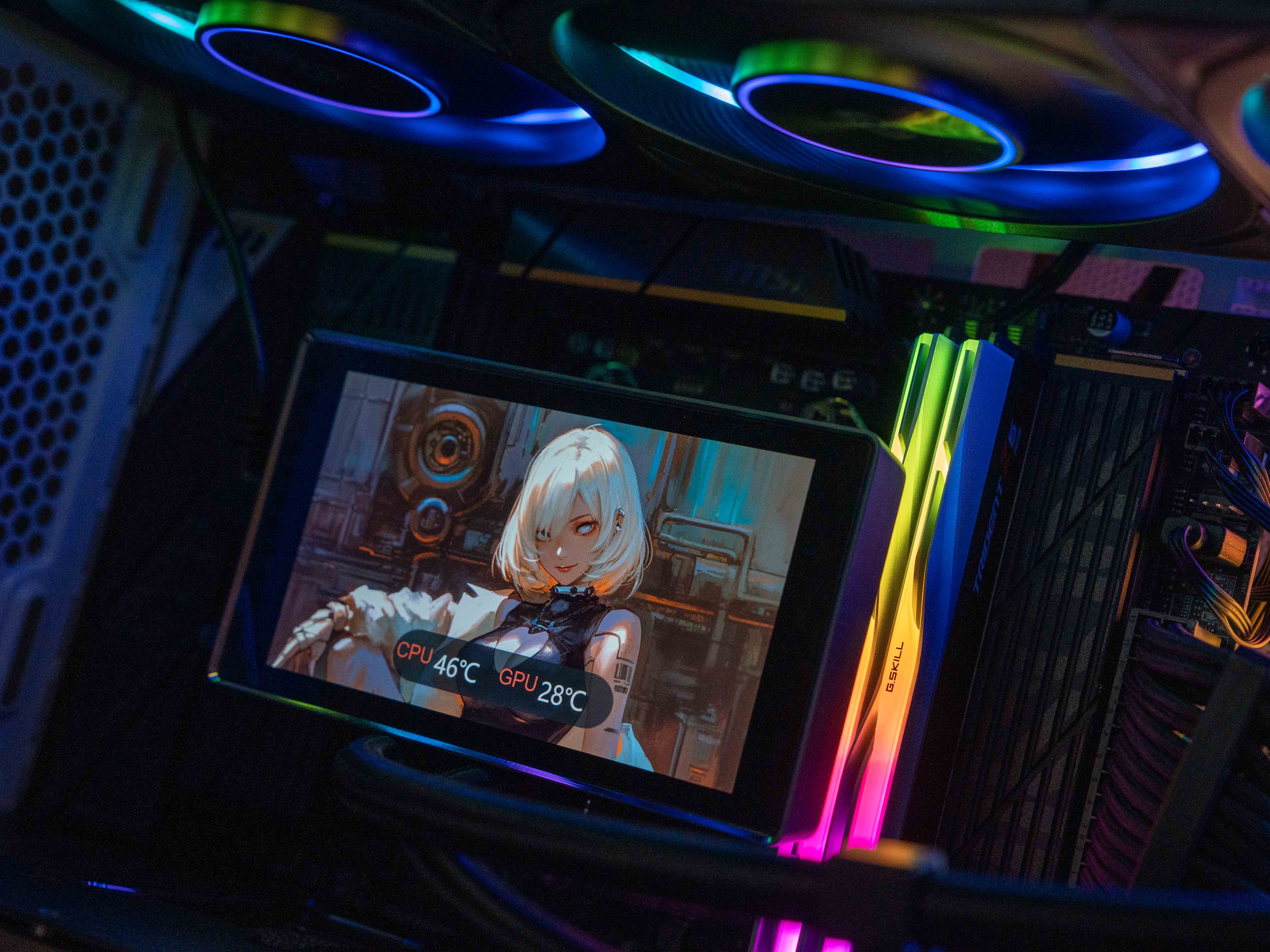 总的来说,超频三银翼Max用一块5英寸的大屏打破了旗舰水冷的视觉天花板,磁吸式设计带来的多种摆放玩法,配合CPS软件的自由上传功能,让这块屏幕不再是冷头的附庸,而是一个可以独立表达个性的交互窗口。