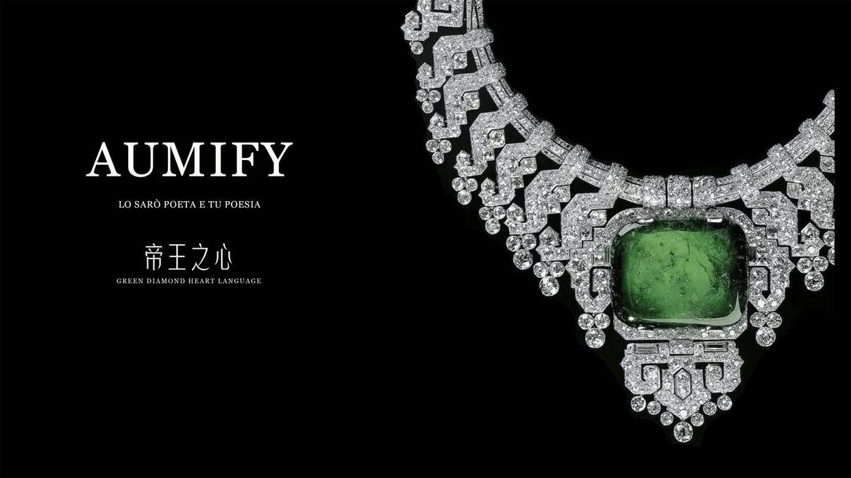 【帝王之心】——祖母绿与钻石交织的皇室图腾,主石如王朝权杖般威严,镶嵌于钻石织就的华殿之中,链身仿若鎏金回廊,每一寸雕琢皆诉说亿万年的地质史诗;