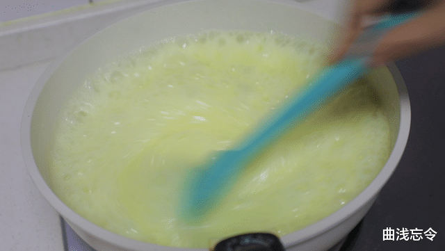 4.全程火力不要忽高忽低。要不停搅拌使糖液受热均匀,搅拌的时候贴着锅底,尽量顺着一个方向,不要混乱或过度搅拌。