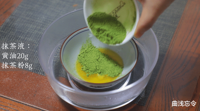 1.抹茶粉用黄油液更好融化,融化之后记得保温。