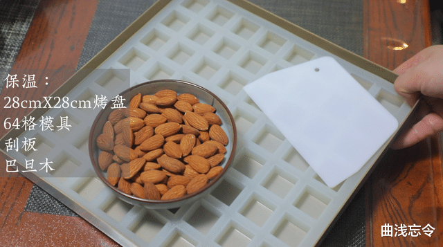 工具:不粘锅、28cmX28cm烤盘、28cmX28cm的64格模具、刮刀、刮板、测温枪