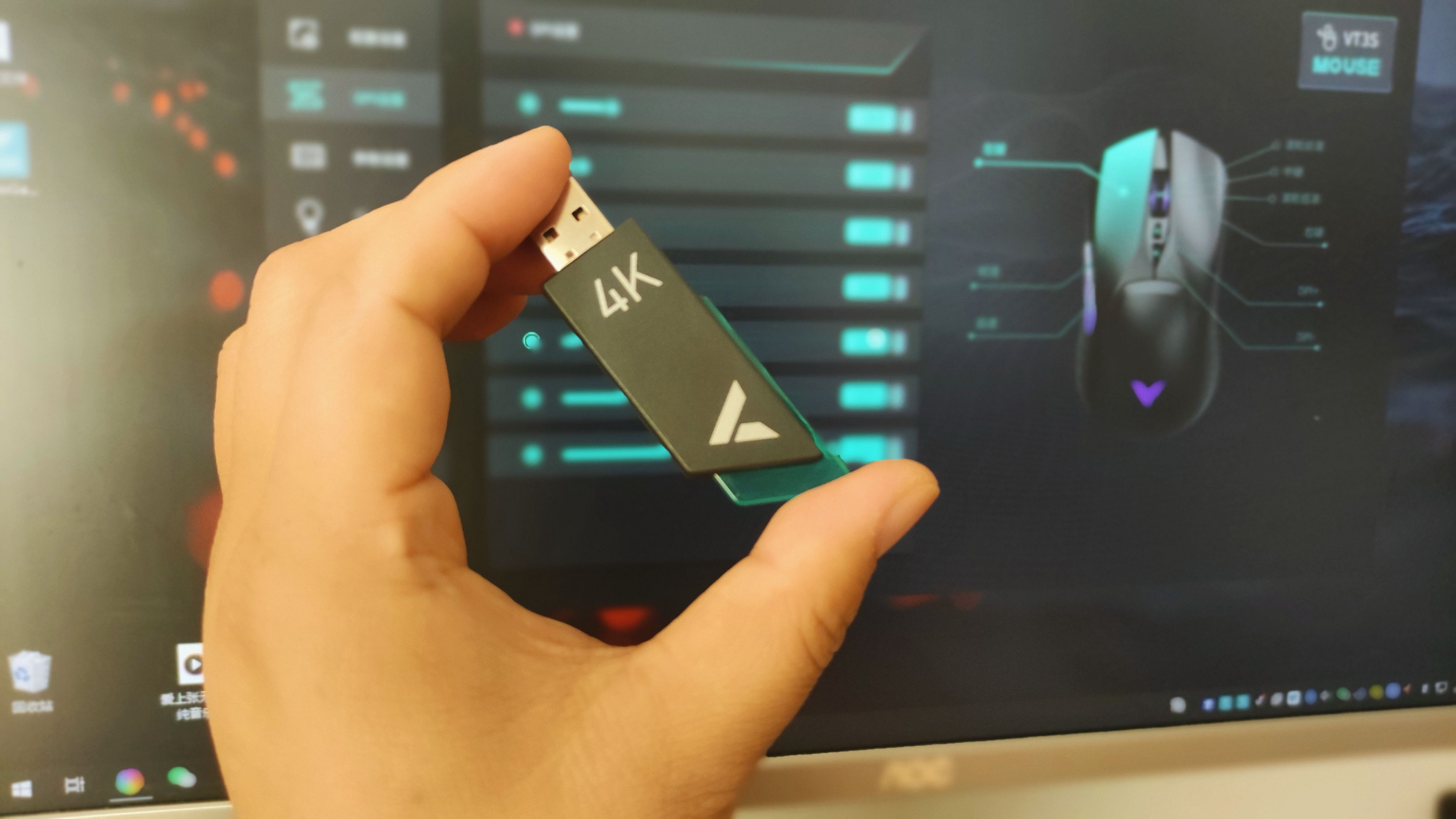 这里我们可以看到在一般的出厂设定,雷柏VT3S的USB报告率有四档:125HZ、250HZ、500HZ和1000HZ。想要拥有更高的DPI体验,可以购买雷柏V2M无线4K接收器,在使用之前要先把驱动、鼠标固件和接收器版本都更新至最新,然后插上后增加了2000HZ和4000HZ两个档位,可供你体验不一样的游戏世界观感。
