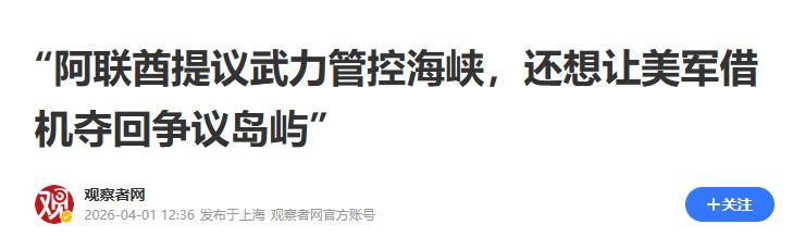 《“阿联酋提议武力管控海峡,还想让美军借机夺回争议岛屿”》观察者网2026-04-01